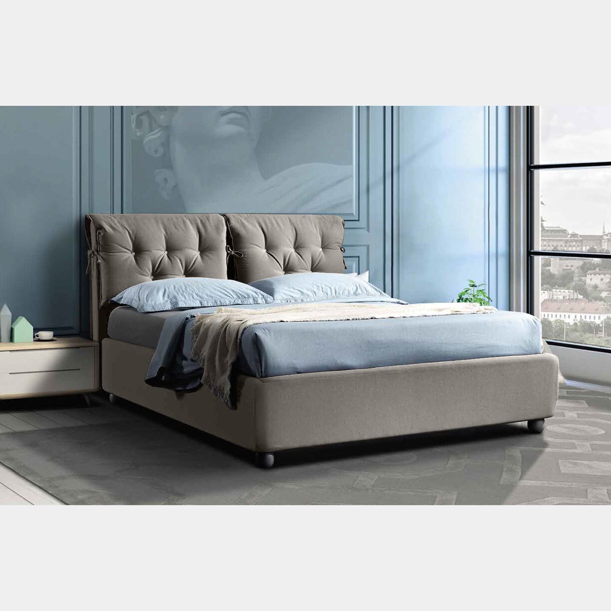 Letto matrimoniale con cuscini e swarovski, finitura tessuto Grigio