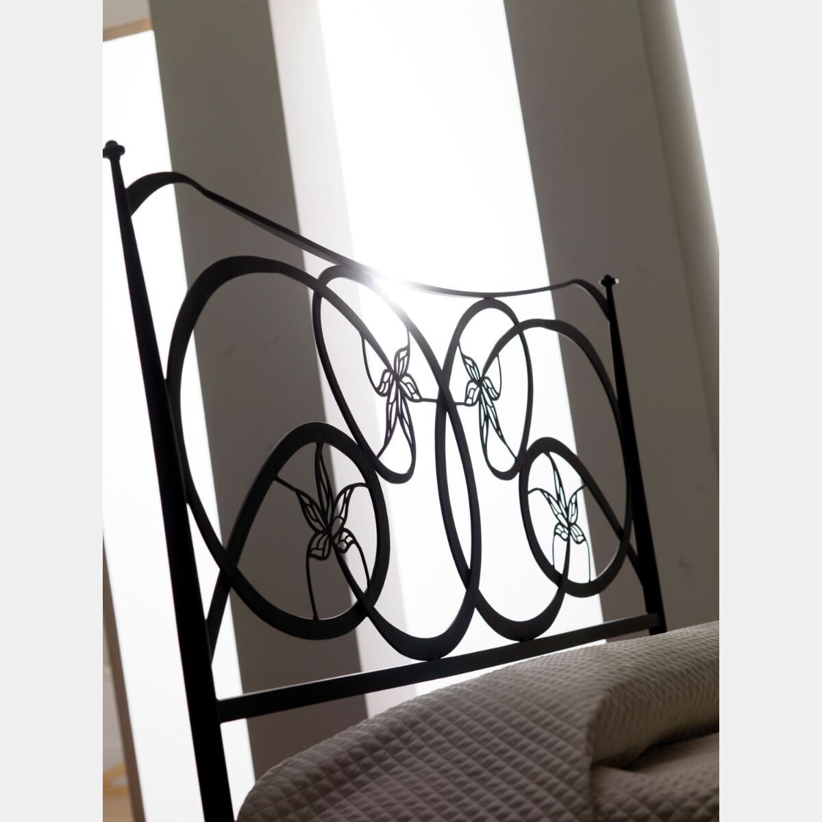 Il letto matrimoniale in ferro modello grigio polvere supporta una rete da 160x190, disponibile come optional dal menù a tendina.