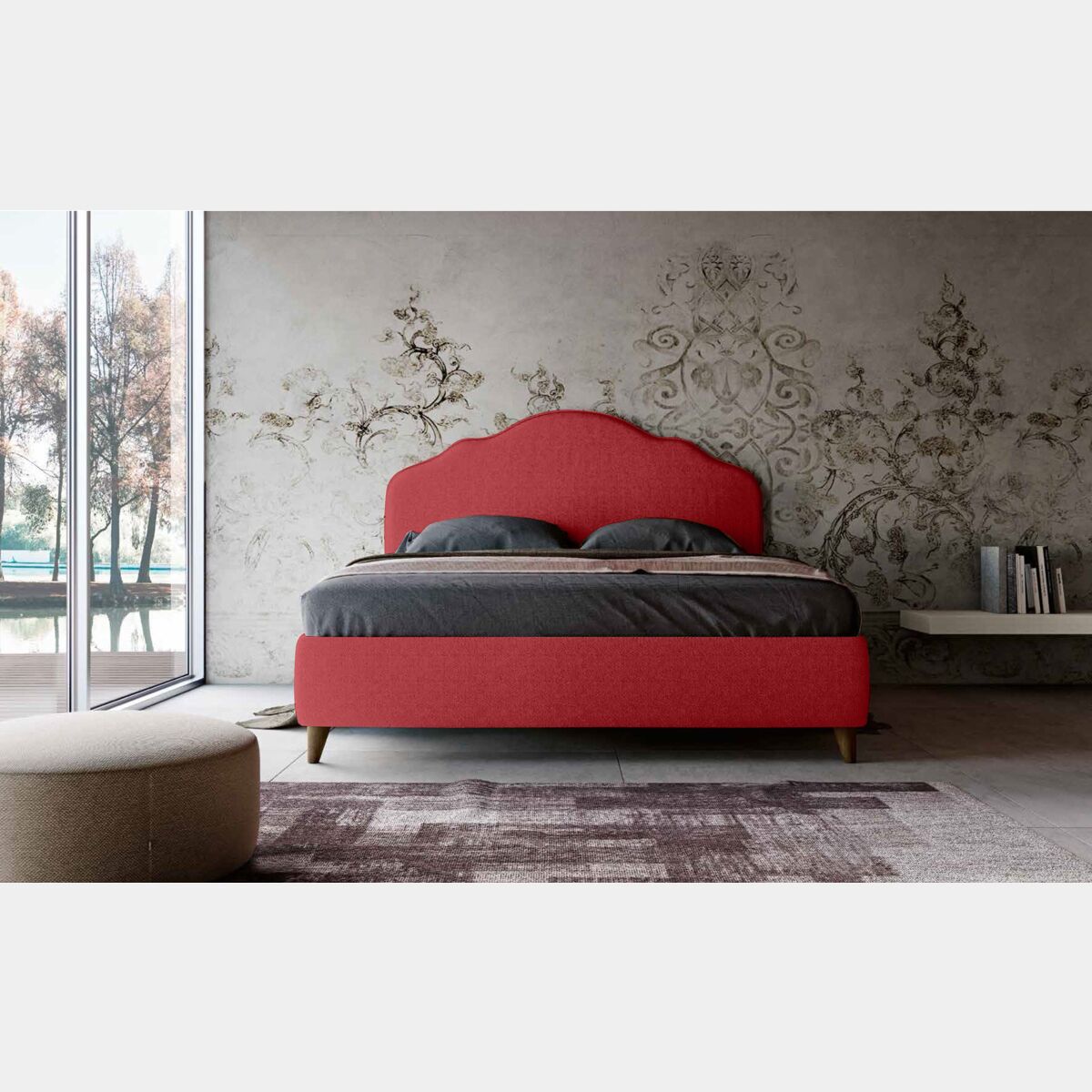 Progettato per donare emozioni uniche il letto matrimoniale in tessuto presenta un design classico, rivisitato in chiave moderna. Il movimento che genera la testata ed i particolari piedini a cono assicurano uno complemento d'arredo di grande eleganza. La testata retrofinita diventa dettaglio fondamentale per il letto che consente un posizionamento anche al centro stanza. Giroletto e testata (sfoderabili) sono proposti in tessuto dalla calda finitura rossa, grazie all'ampio campionario disponibile è possibile personalizzare il letto matrimoniale. Il letto matrimoniale diventa l'ideale per una collocazione in camere arredate con gusto e caratterizzate dalla ricercatezza degli arredi.