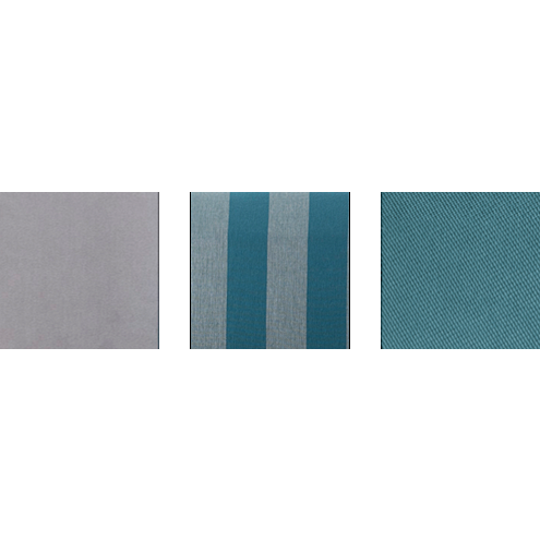 Letto contenitore Daneb in finitura azzurro e grigio con dettaglio a righe.