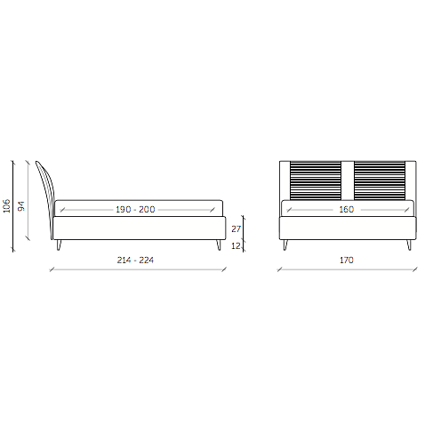 E' un letto dal design innovativo, la cui testata ricurva è realizzata con cuscini centrali imbottiti ed integrati alla struttura. E' provvisto di una rete contenitore dalle misure di 160x190.