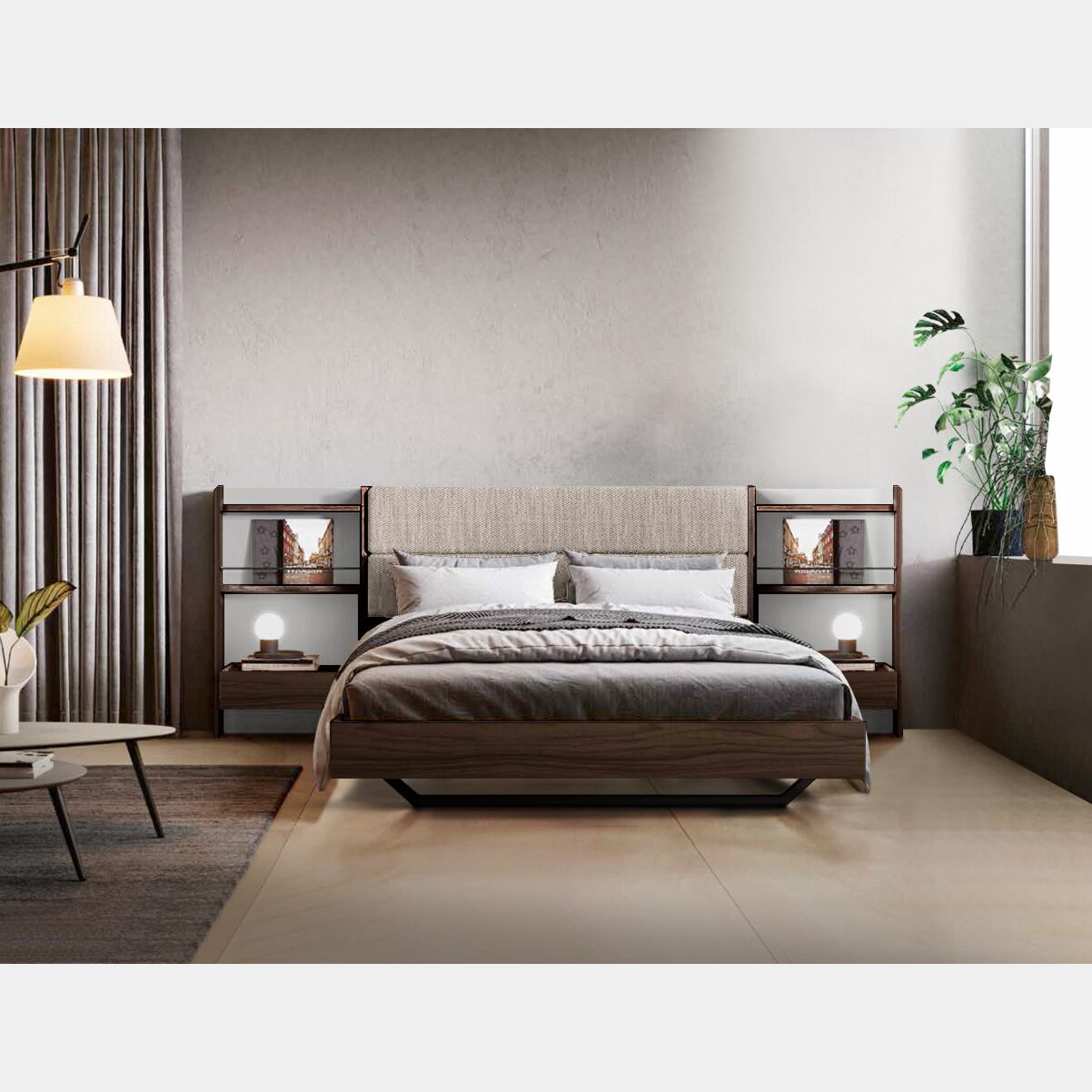 Letto matrimoniale Ester, finitura Noce moro e Grigio seta con testata tessuto Grigio