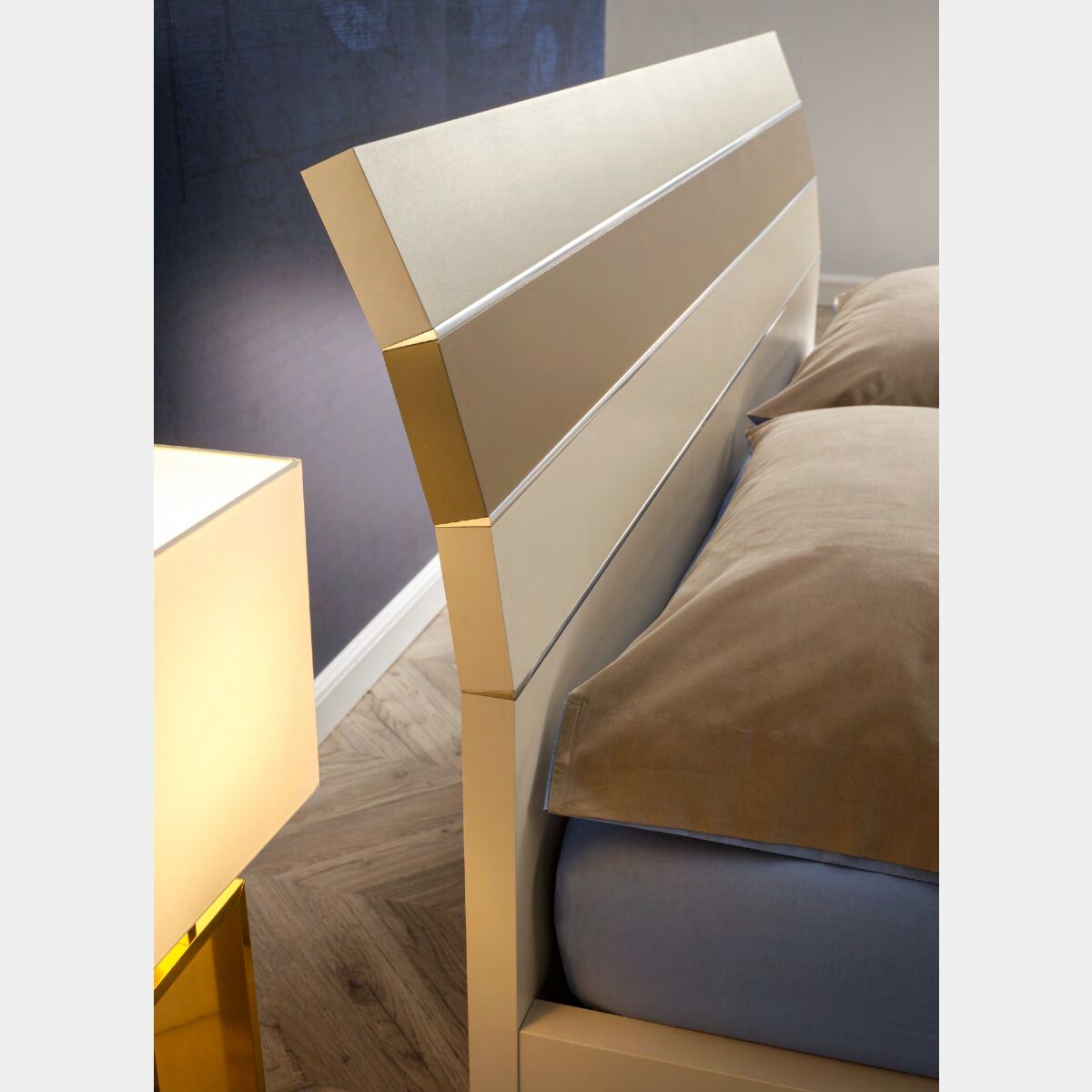 Letto matrimoniale Franklin con testata curva, in Champagne laccato e Tabacco laccato