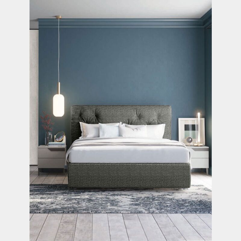 Testiera e giroletto sono imbottiti e in tessuto. La rete matrimoniale è compresa e misura 160x190. Lasciati stupire da una struttura elaborata della testiera e giroletto rendendo la tua camera protagonista.