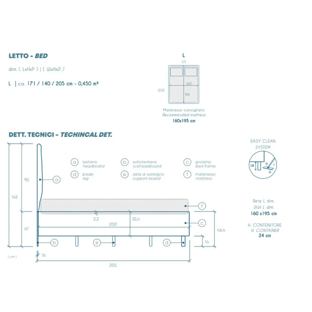 Se siete interessati a un mobile di qualità e allo stesso tempo che sia funzionale avete la possibilità di aggiungere la rete contenitore nelle dimensioni 160x195cm non inclusa. Il tessuto si rivela soffice e delicato al tocco.