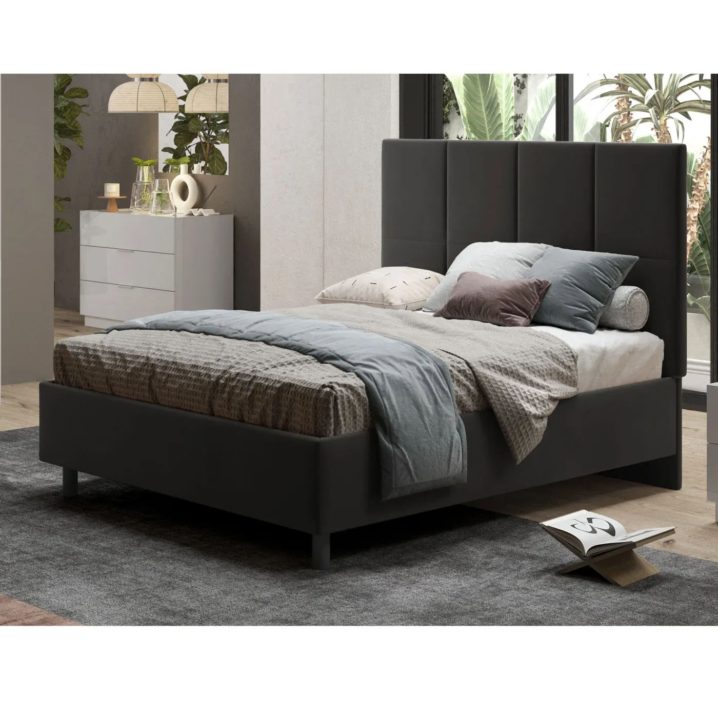 Letto matrimoniale in velluto colore Grigio grafite. E’ disponibile anche in versione in Rosa antico, Pistacchio, Marrone sabbia, Grigio perla, Grigio Graffite, Marrone scuro, Blu.