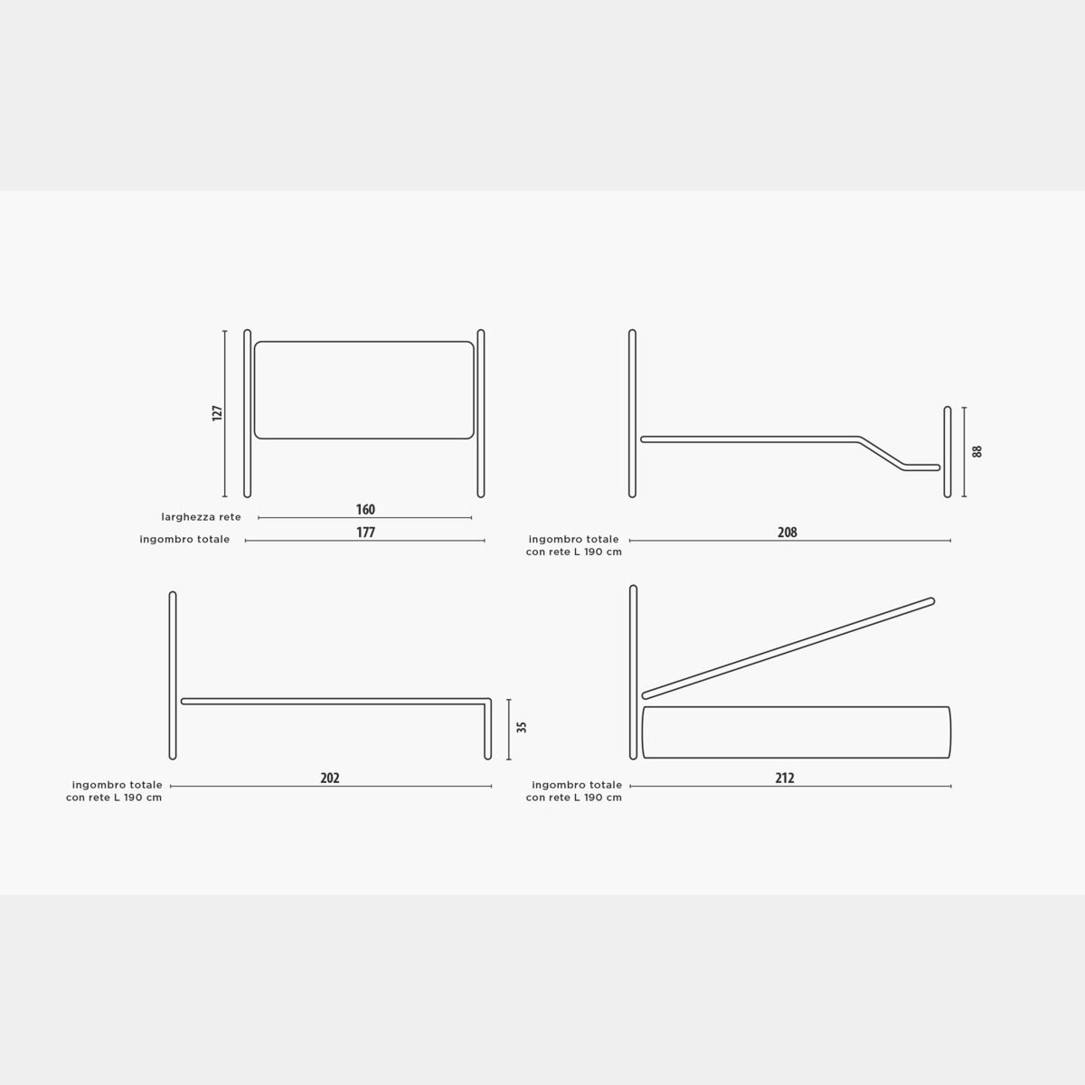 - Matrimoniale: L.177 H.127/88 P.208 cm