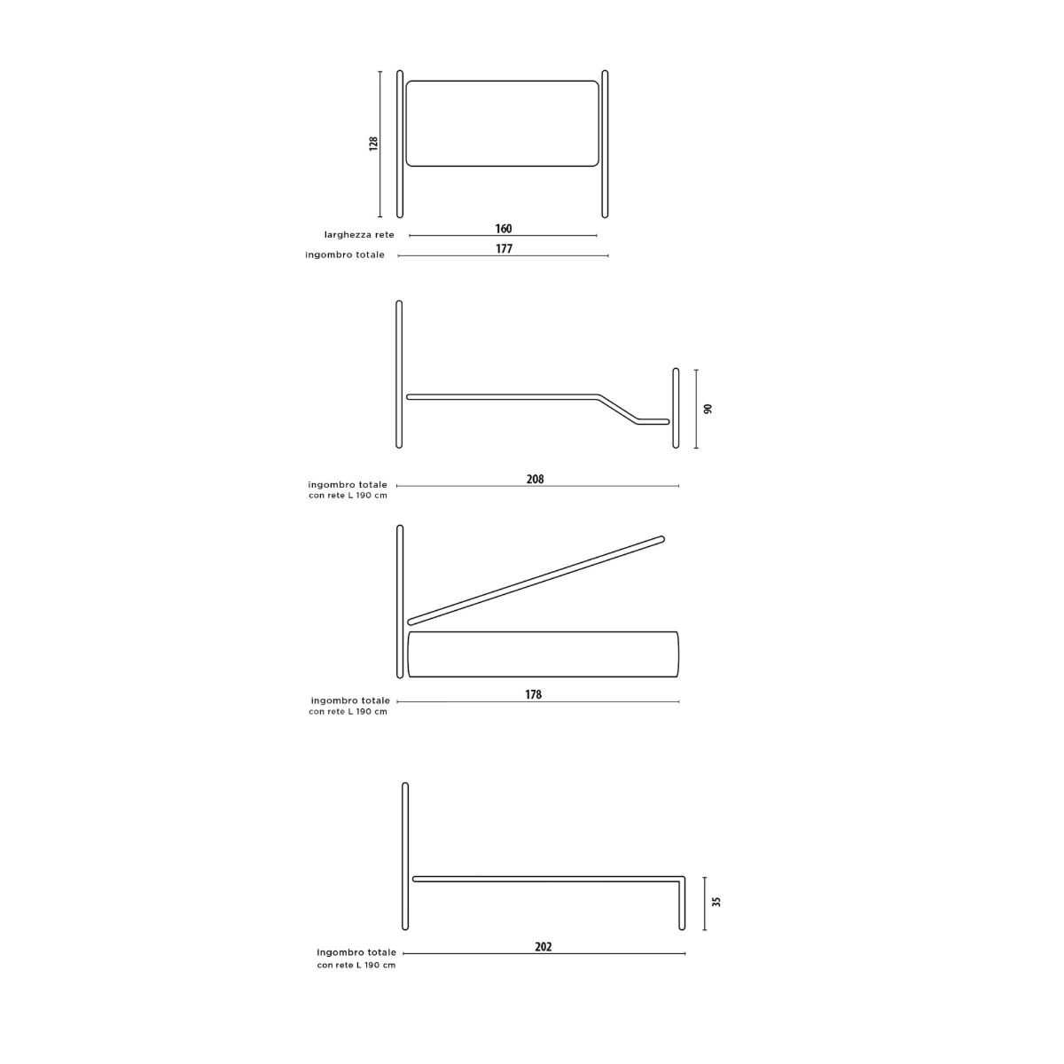 - Matrimoniale: L.177 H.128/90 P.208 cm