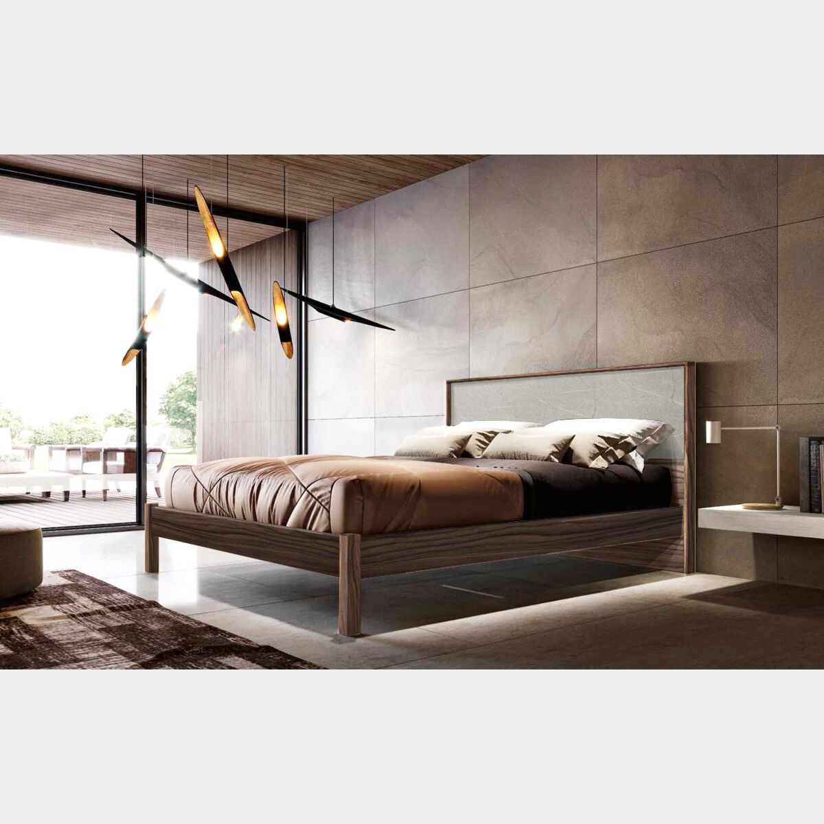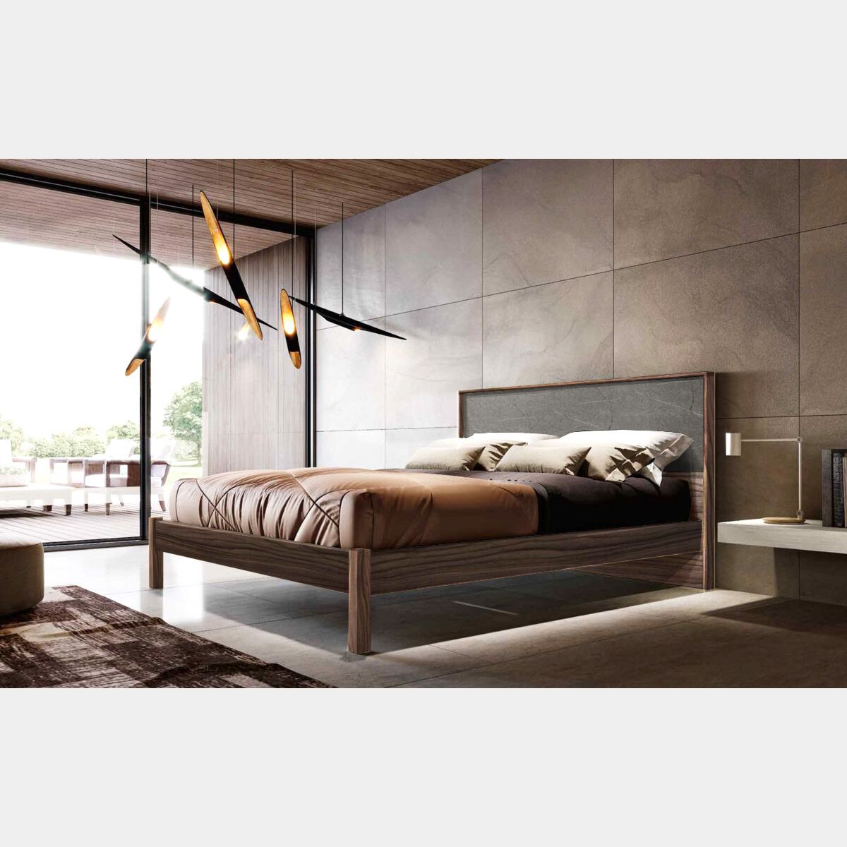 Letto matrimoniale in legno, Noce Moro con inserto Graniglia scura