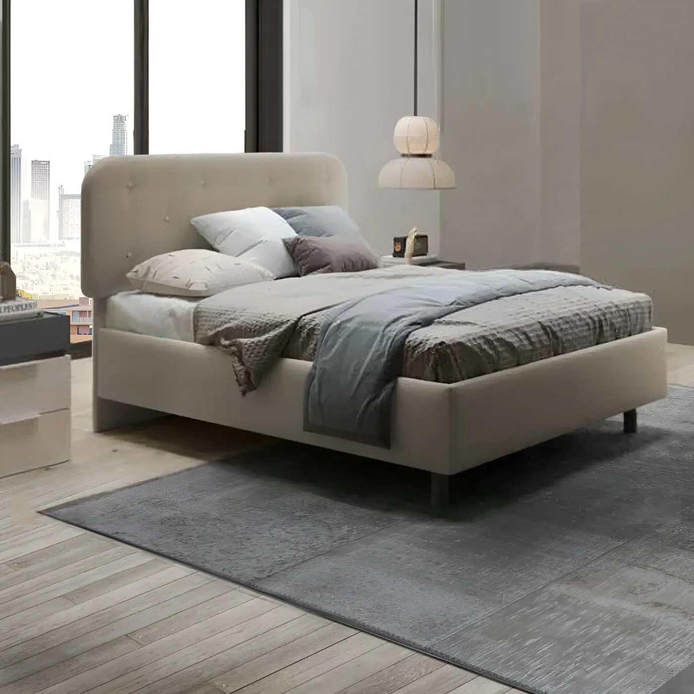 Letto matrimoniale tessuto finitura Tortora, design moderno