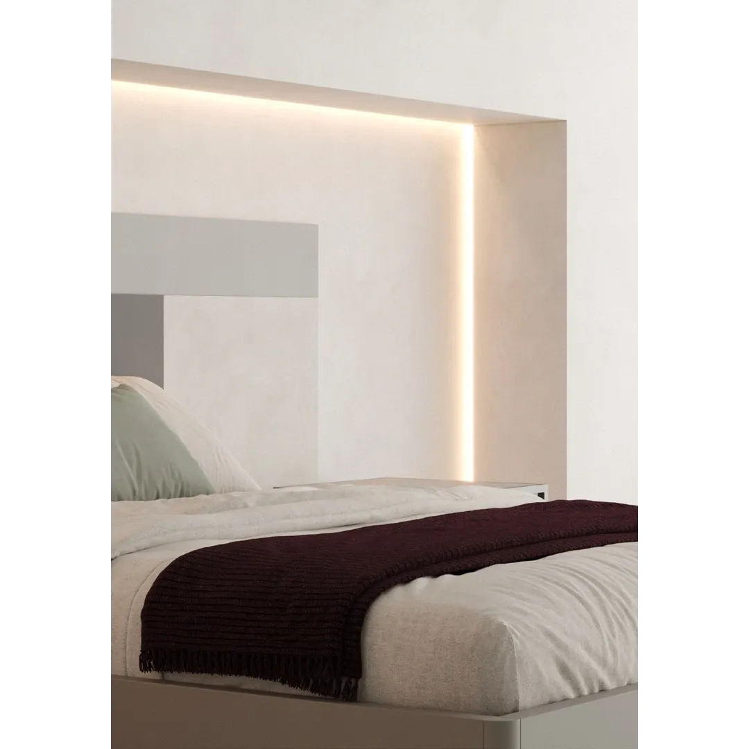 Il letto è disponibile in due profondità, è possibile scegliere tra numerosi colori per personalizzare al meglio il letto, adattandolo così alla propria camera da letto.
