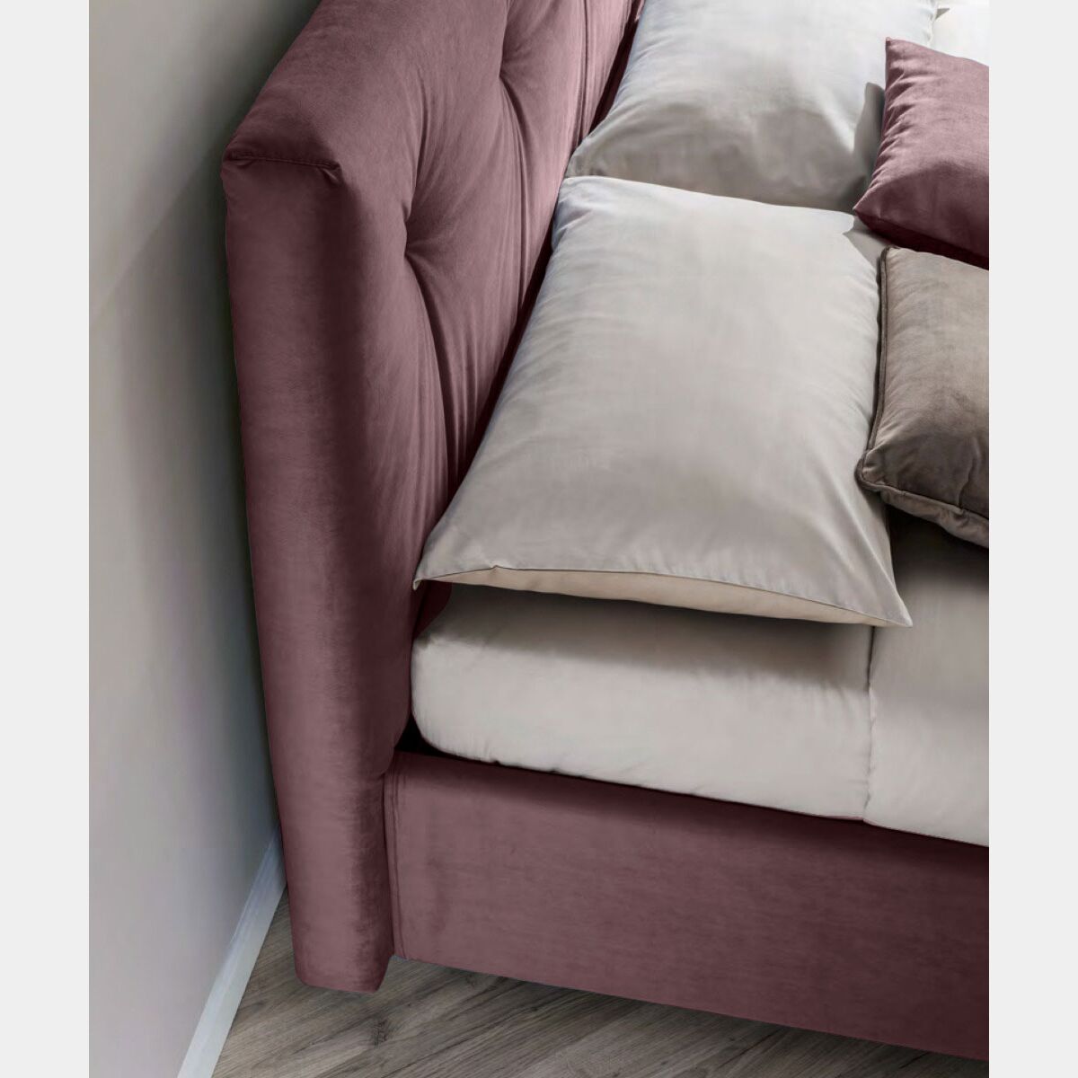 La testiera è caratterizzata da un'elegante imbottitura, è proposto in una tonalità di viola: il Prugna. A disposizione vi è un'ampia gamma di tinte per personalizzare il letto ed adattarlo alla propria camera.