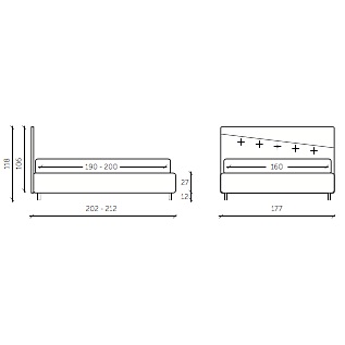 La testata si caratterizza per la diagonale che crea l'effetto bicolore impreziosita da una fila di bottoni parallela. E' provvisto di una rete contenitore dalle misure di 160x190.
