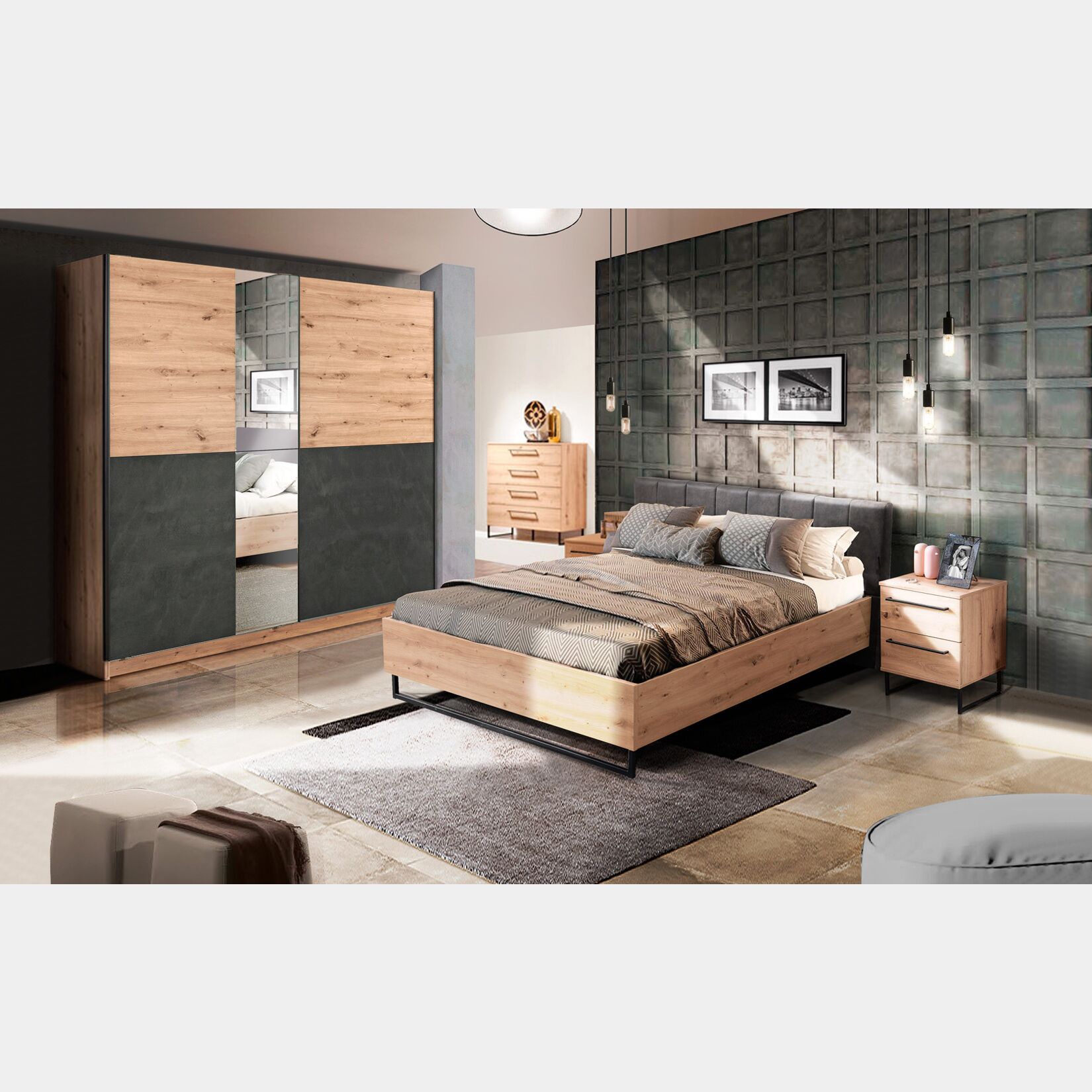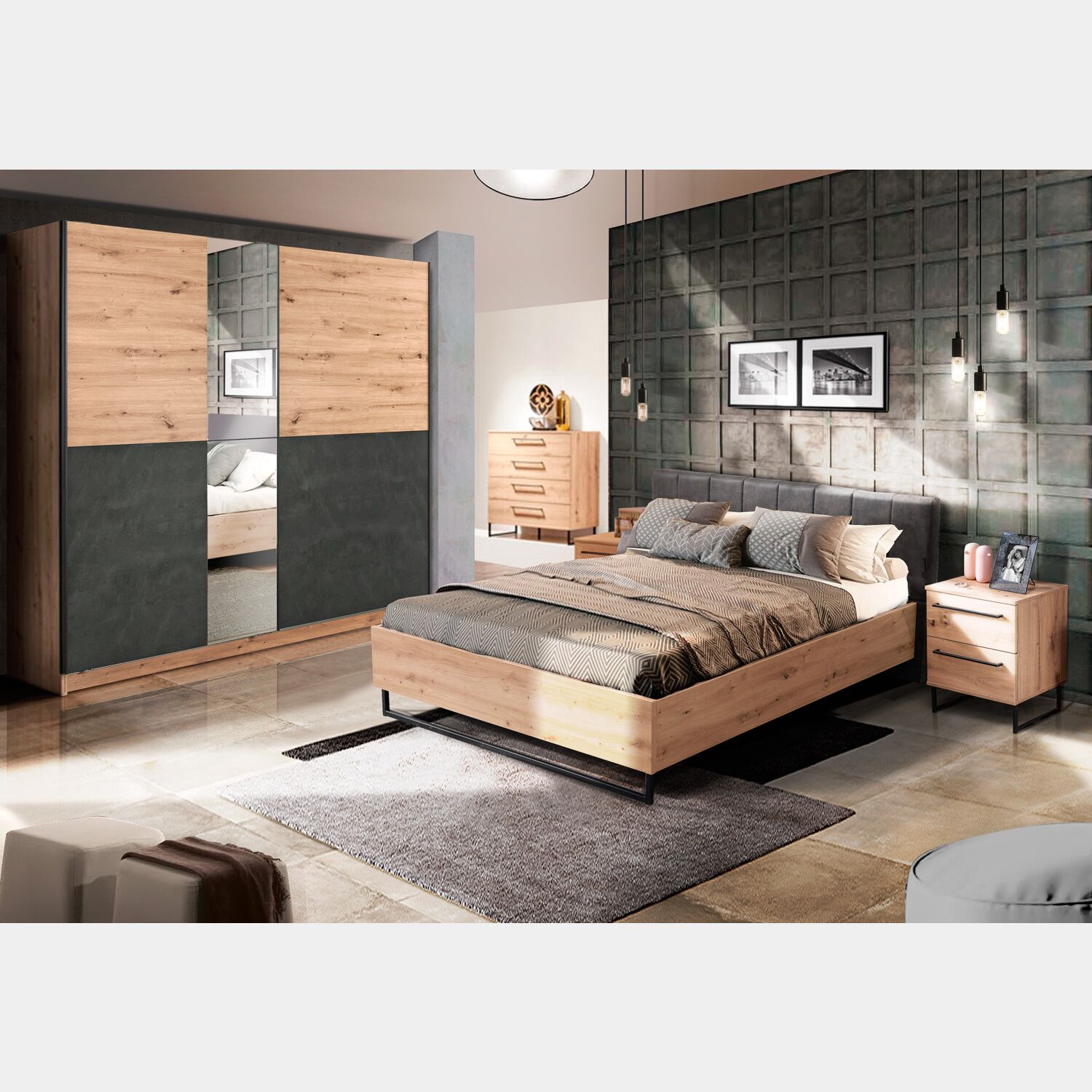 Camera matrimoniale industry con armadio scorrevole, finitura Rovere, in pronta consegna