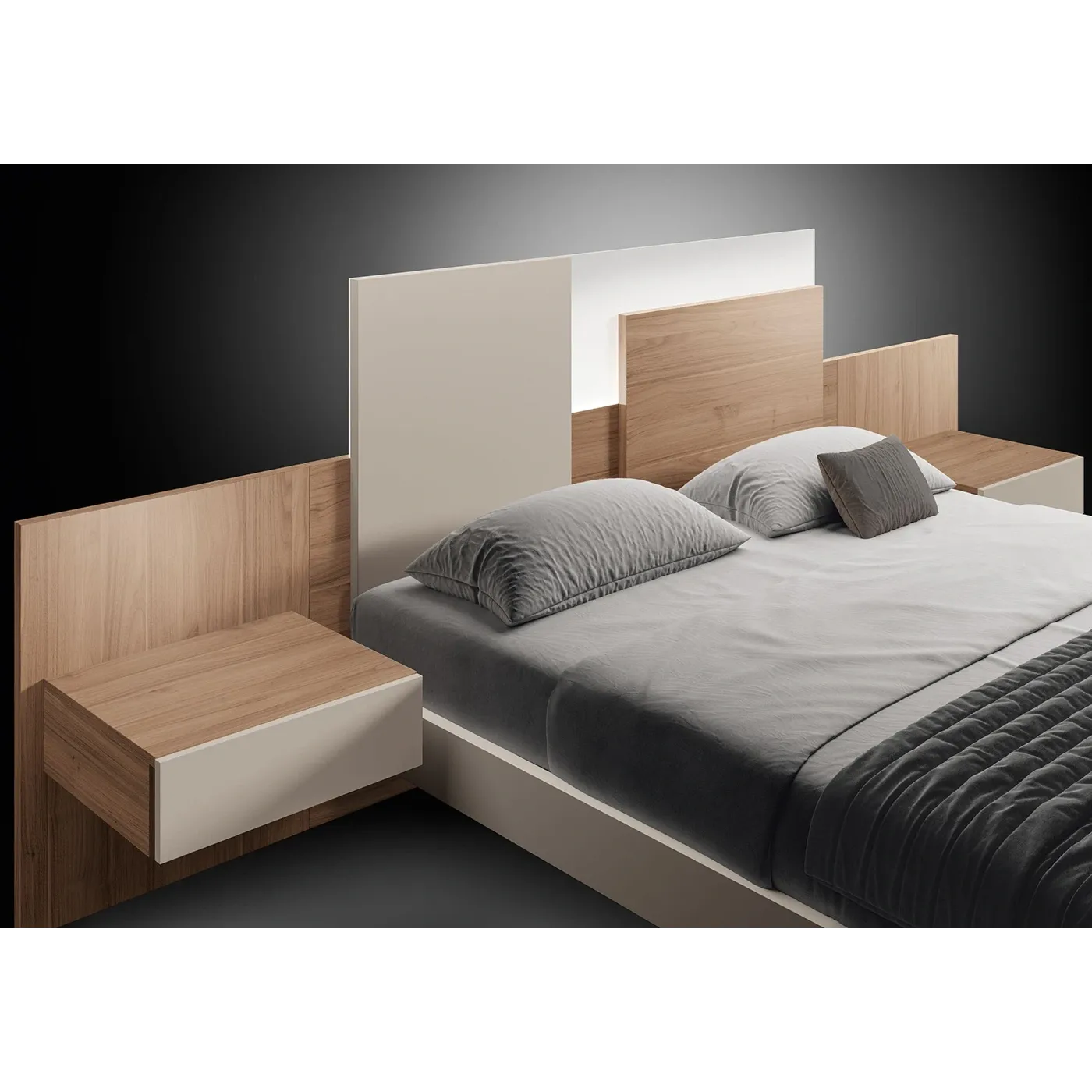 Per completare il tutto, hai la possibilità di aggiungere dei comodini sospesi, che si integrano perfettamente con il design del letto, creando un ambiente arioso e funzionale.