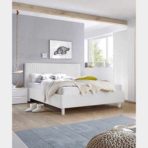 Letto square matrimoniale con testiera in tessuto imbottito biancoE' un prodotto made in Italy di ottima qualità.