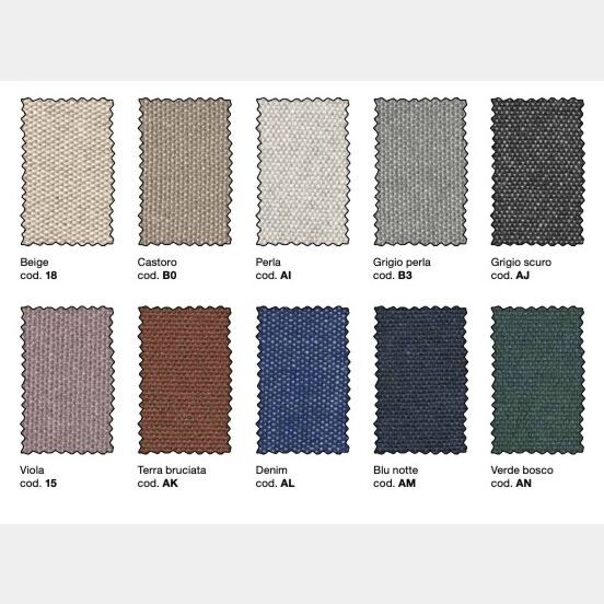 • Tessuto: tessuto idrorepellente, antimacchia. 90% cotone 10% altre fibre. Consigliato lavaggio a secco, non utilizzare tetracloretilene, candeggina o cloro, lavabile ad una temperatura massima di 30°C, non asciugare in asciugatrice, stirare ad una temperatura massima di 110°C.