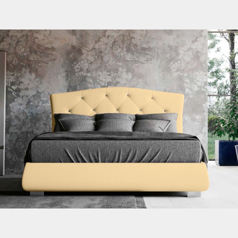 Letto matrimoniale testata retrofinita, ecopelle Panna con swarovsky