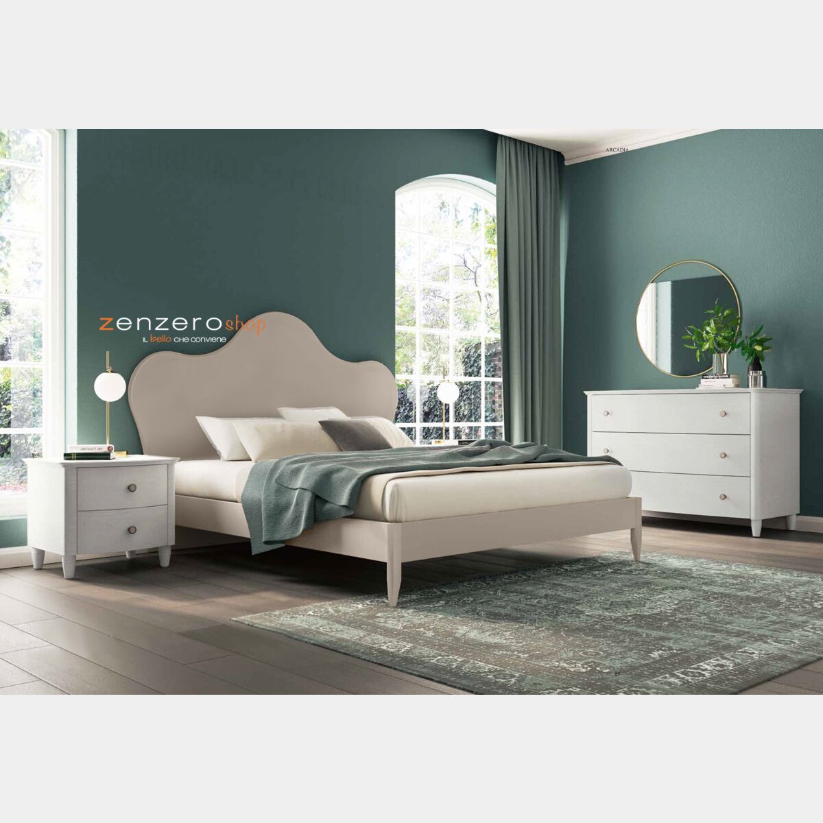 Letto matrimoniale Vittoria con testata retrofinita in finitura Canapa