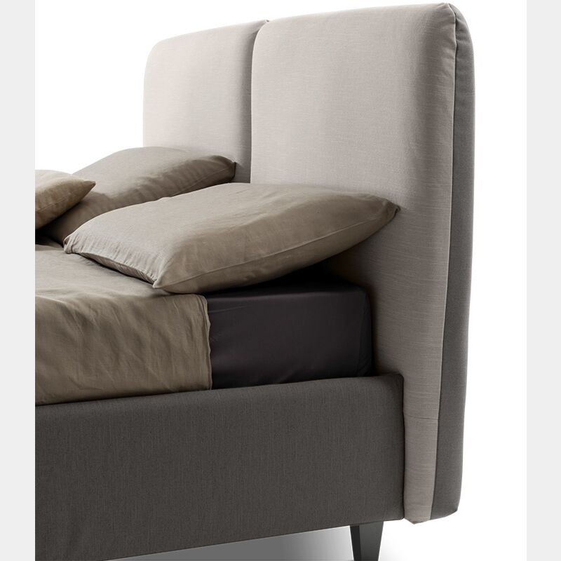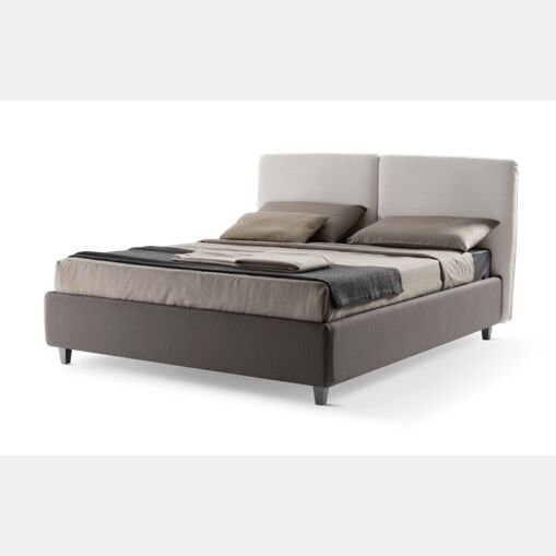 Letto matrimoniale Wezen con conrenitore in fintura grigio perla ed antracite. E' un letto dalla soffice testata ottenuta grazie a una speciale imbottitura, grazie a questo dettaglio l'ambiente notte risulterà personalizzato.