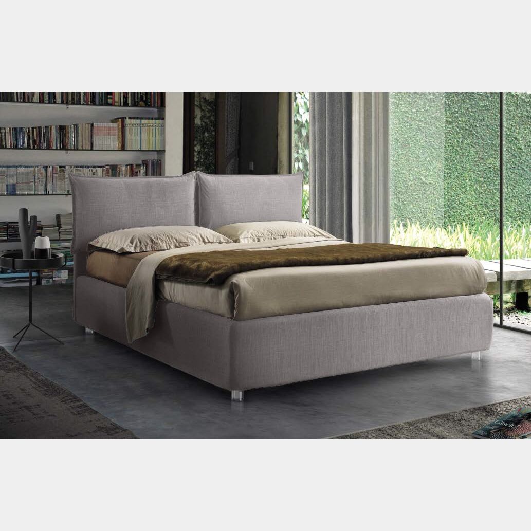 Letto moderno matrimoniale con cuscini in tessuto, finitura Cemento
