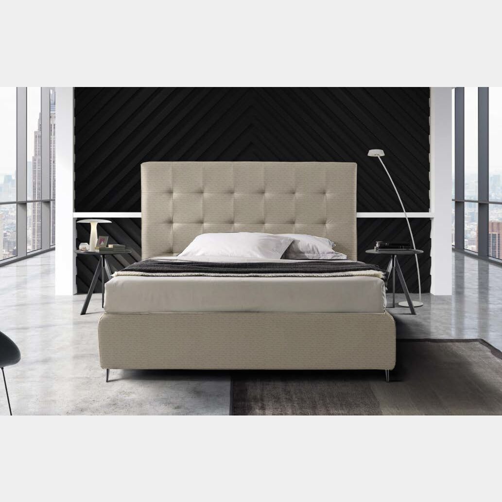 Il letto matrimoniale presenta una semplice testata con motivi quadrati, capace di arredare e personalizzare la camera da letto al massimo, grazie alla possibilità di sostituire la finitura Panna in altre, assicura al contempo totale relax. Un altro dettaglio che non passa inosservato sono i piedini a cono cromati in antracite che conferiscono al letto uno stile pulito e di grande impatto.