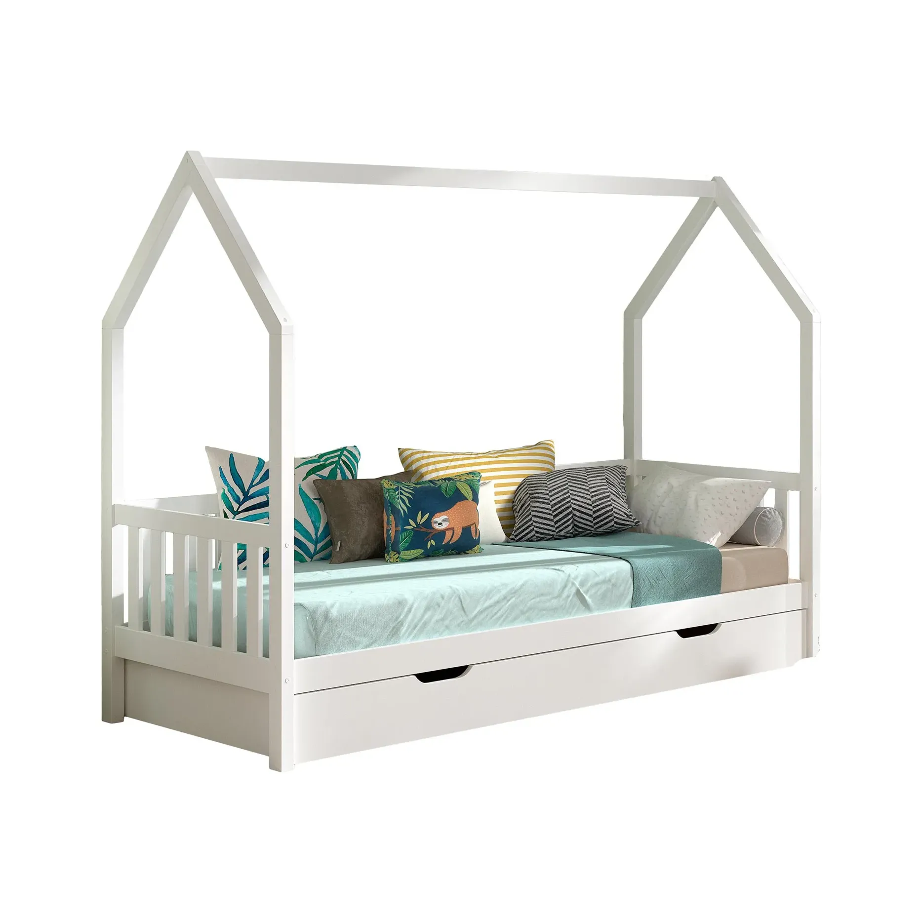 Il letto monsettoriano a casetta, con ringhiera e struttura di colore Bianco, è realizzato in pino massiccio. Il suo semplice ma simpatico design fa si che quest'articolo risulti essere appetibile per qualsiasi camera per bambini.
