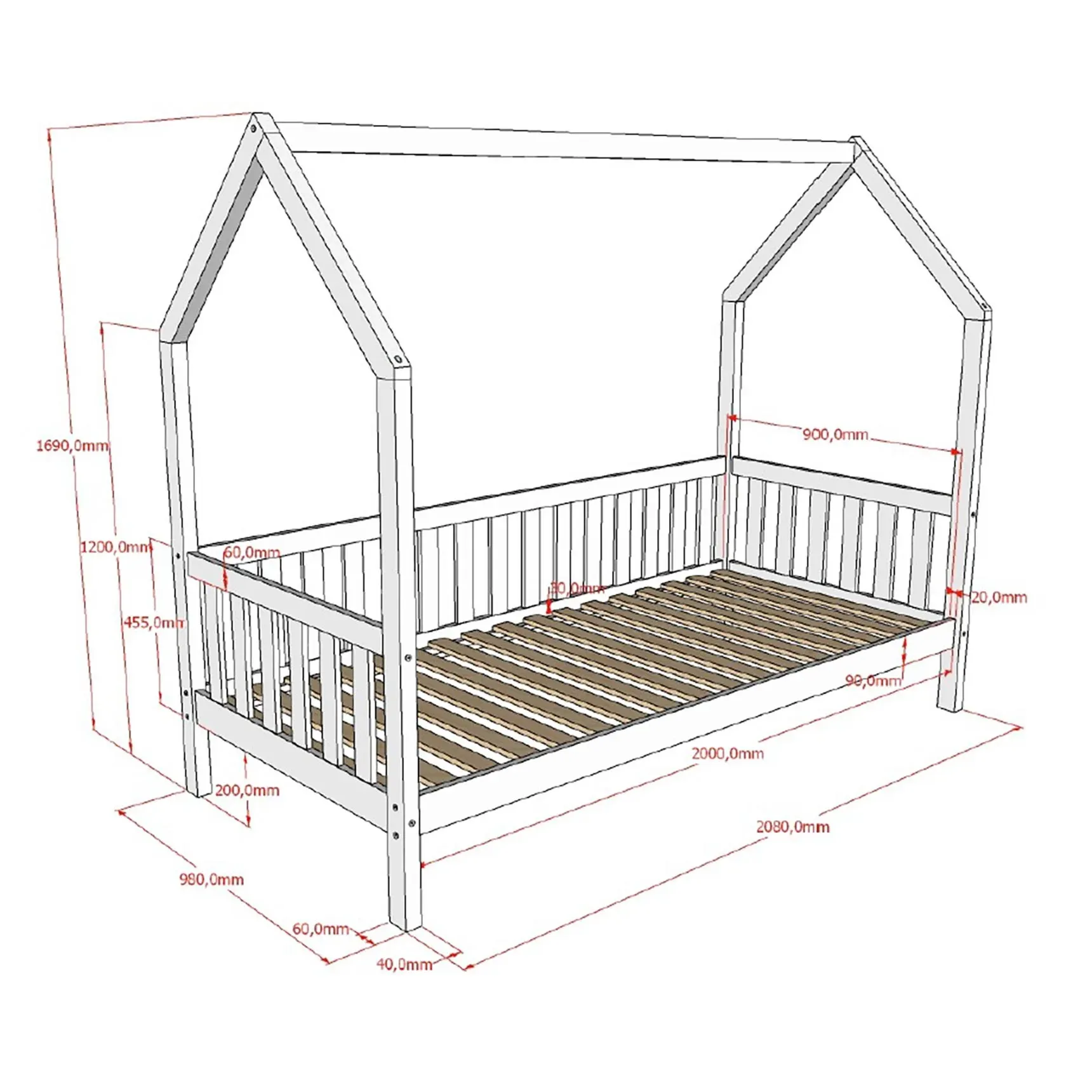 Un letto montessoriano a forma di casetta progettato per essere il pezzo fondamentale per l'arredamento di una camera per bambini in modo da garantire loro un'infanzia più felice ed immersa nel maggior confort possibile. L'estetica peculiare, infine, lo rende un articolo affascinante e molto competitivo sul mercato.