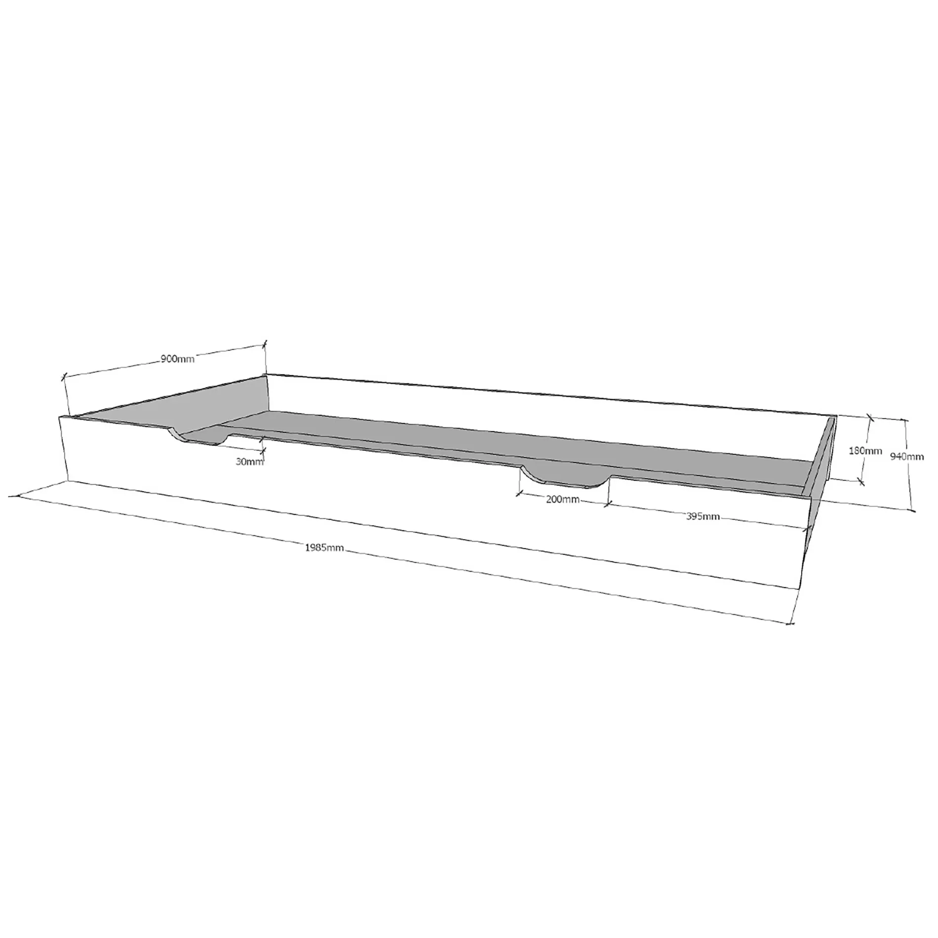Il cassettone sotto il letto è dotato di ruote, che ne facilitano l'estrazione e l'inserimento. Questo cassetto offre uno spazio letto extra per un ospite, ma può anche essere utilizzato come spazio aggiuntivo per riporre oggetti.