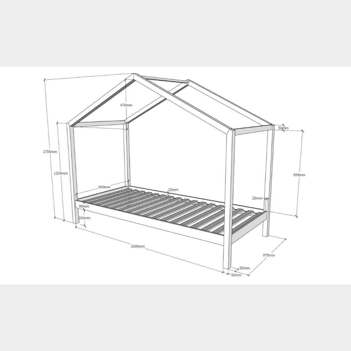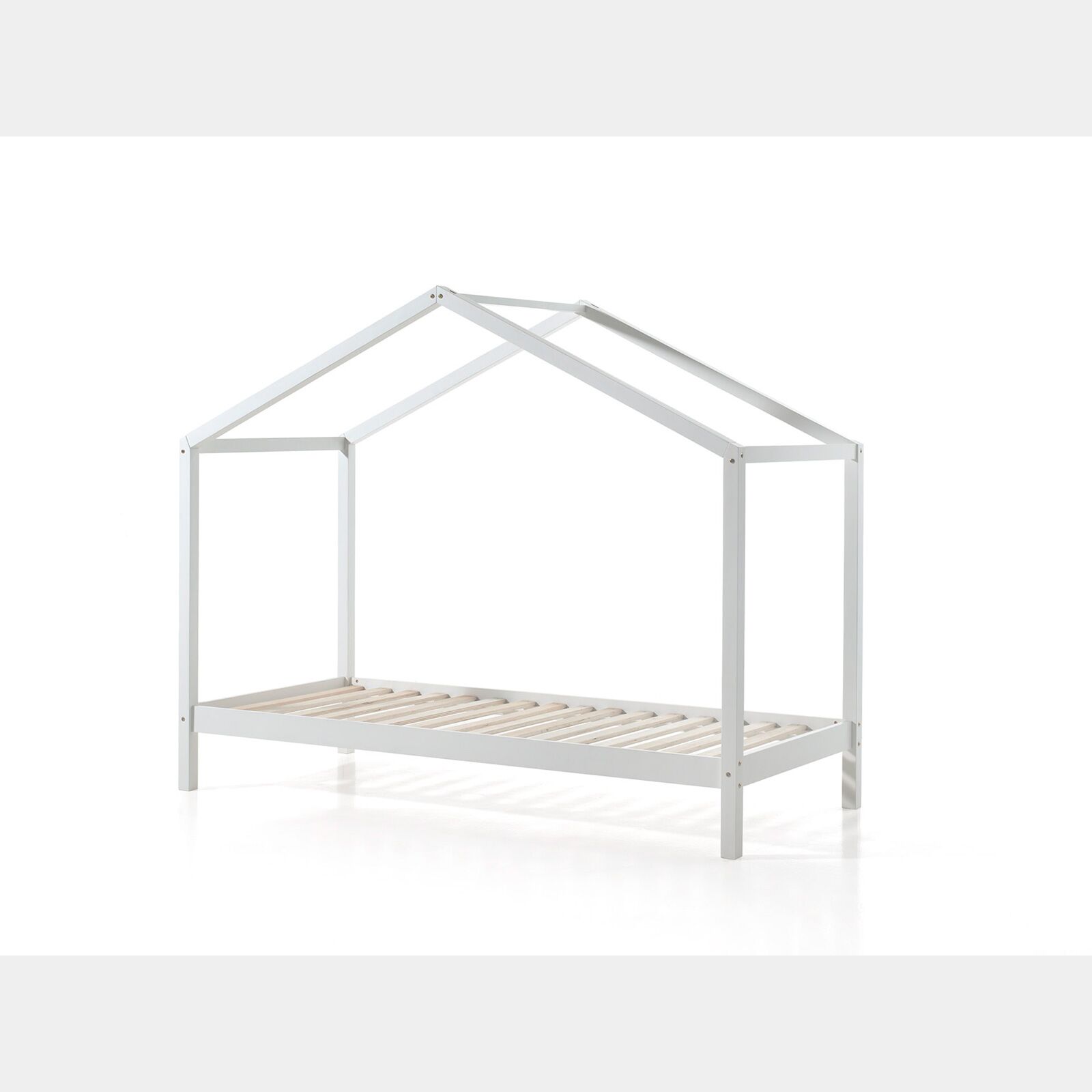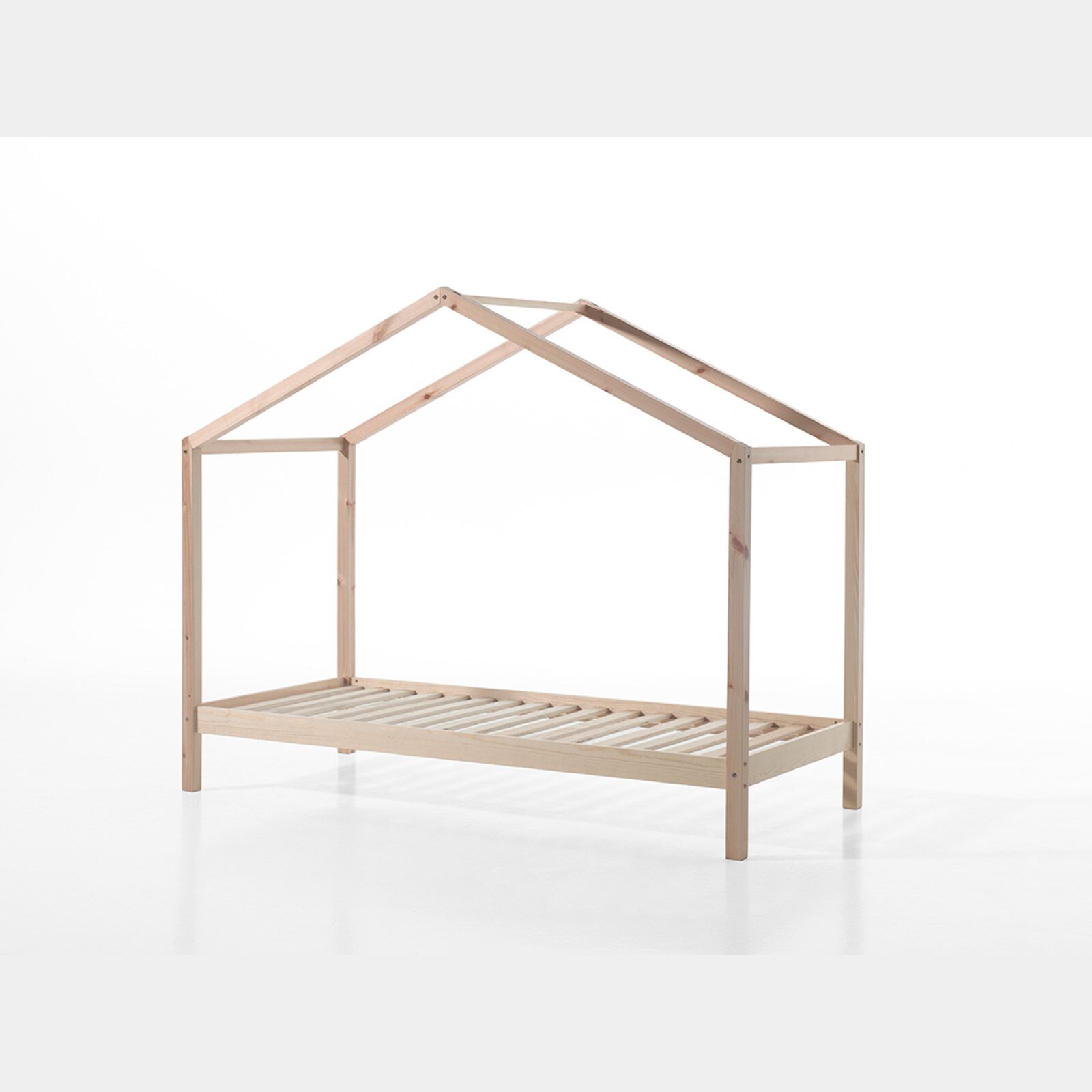 Semplice e di forte impatto il design del letto assicura una perfetta adattabilità a tutte le camerette. Il letto è prodotto in pino massello ed è disponibile in due finiture: naturale o laccato bianco. La struttura a tetto può essere decorata con luci o tessuti per personalizzare al meglio il letto.