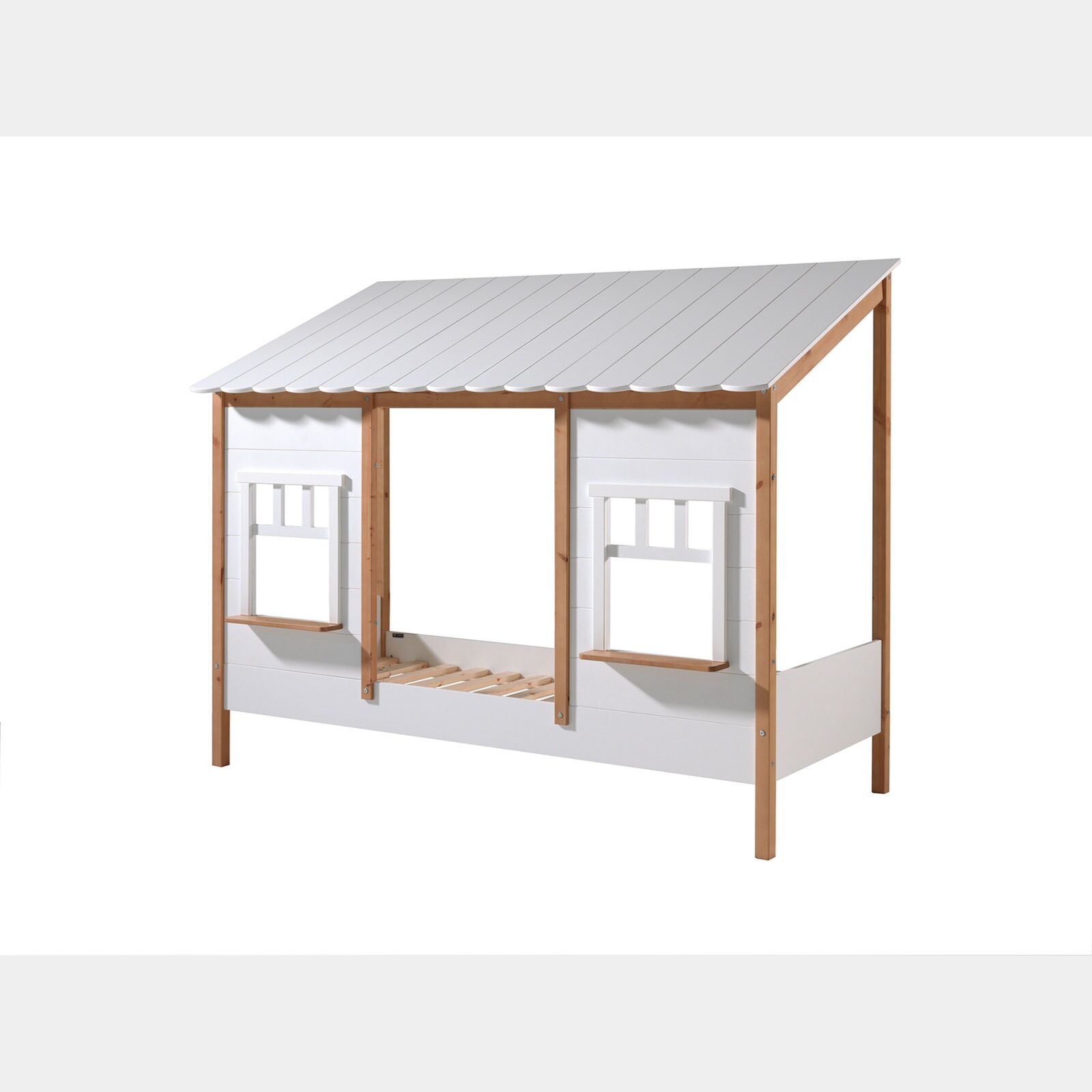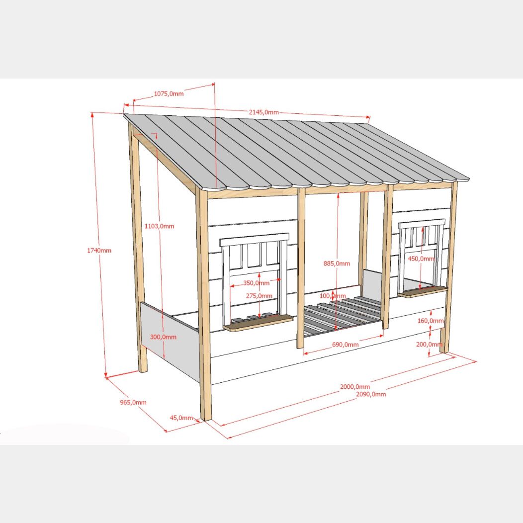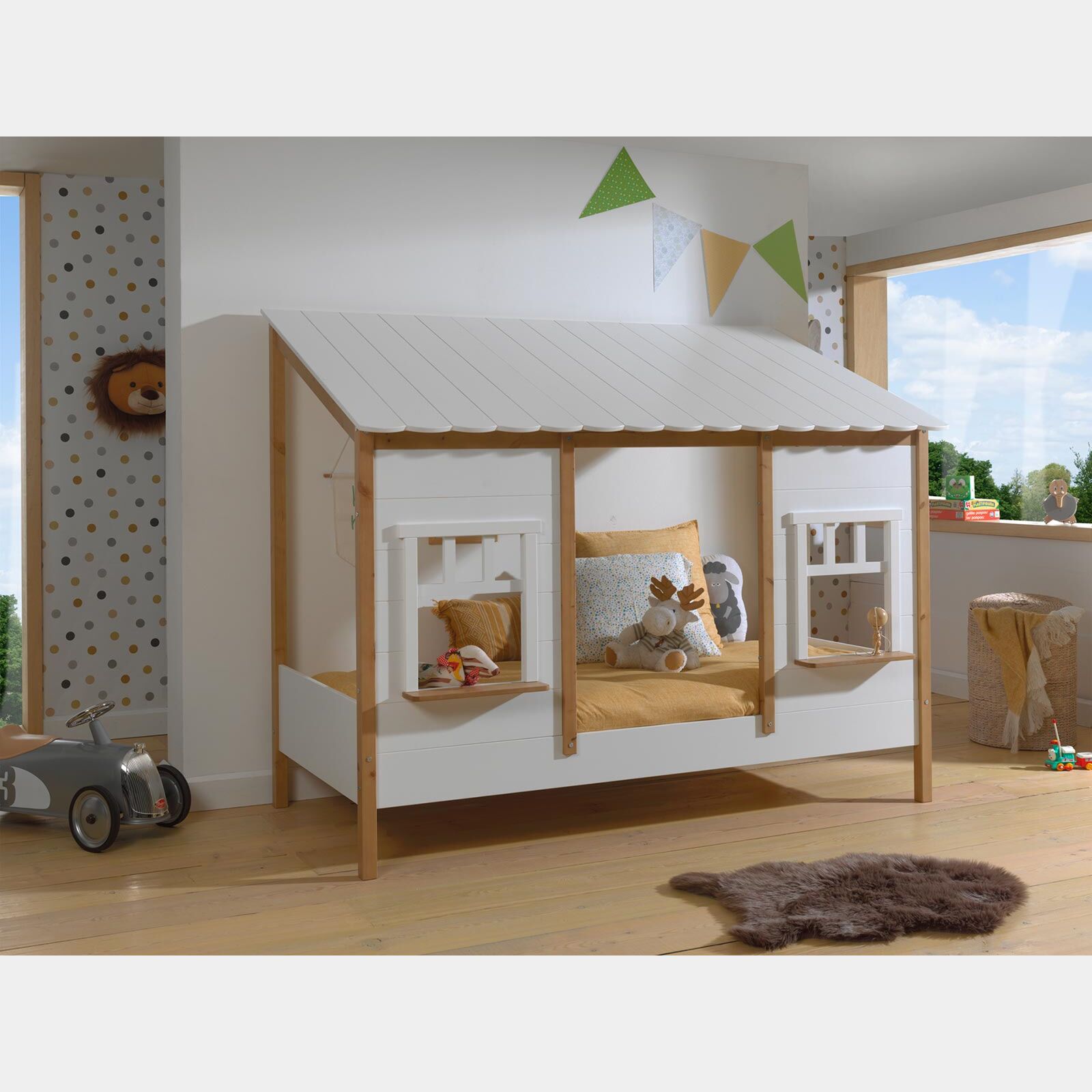 Il letto montessoriano dal design a casetta è realizzato in pino massello e mdf laccato bianco. Il tetto smerlato e le finestre ritagliate con mensole conferiscono al letto un aspetto cottage. Ideale per tutte le camerette il letto offre un arredo unico e di forte impatto, in grado di personalizzare al massimo l'ambiente.