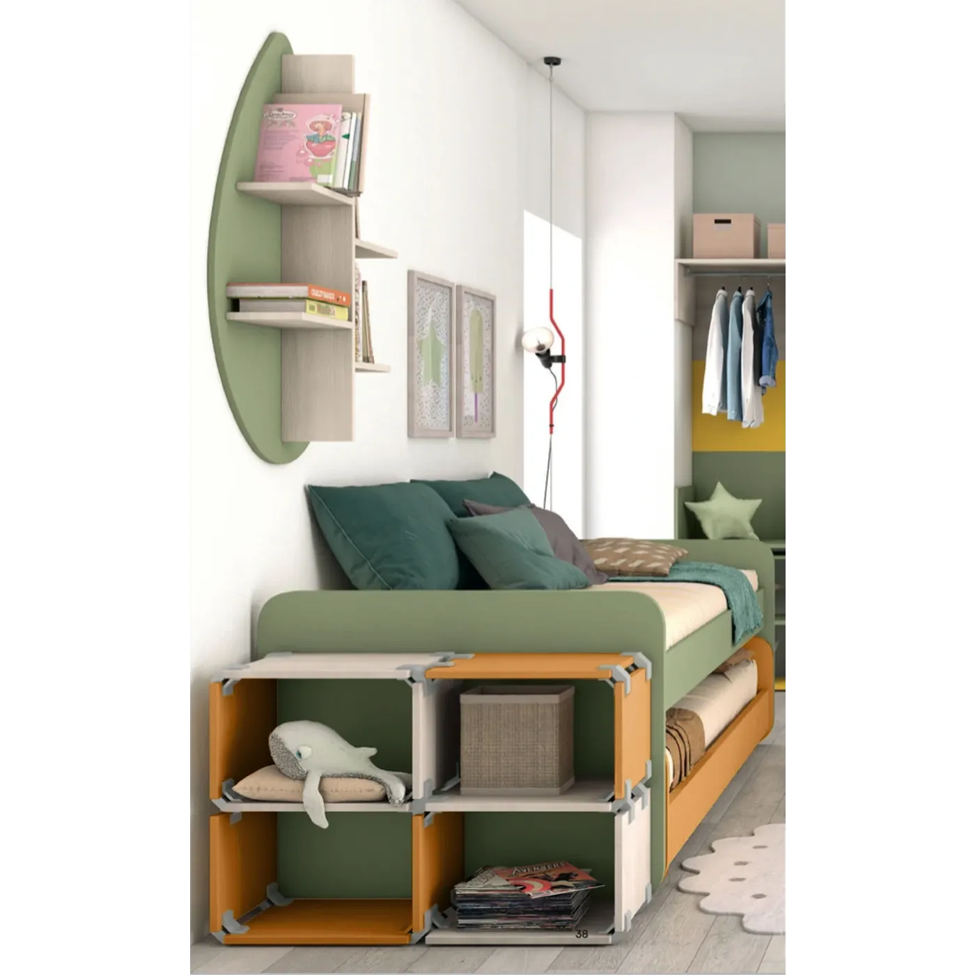 Il letto è la giusta soluzione salvaspazio per una cameretta dalle dimensioni ridotte. Pratico, comodo ed elegante si caratterizza per i suoi colori che donano luce e carattere alla stanza. E' possibile variare le finiture scegliendo attraverso un'ampia gamma di colori, selezionabili attraverso il menù a tendina.