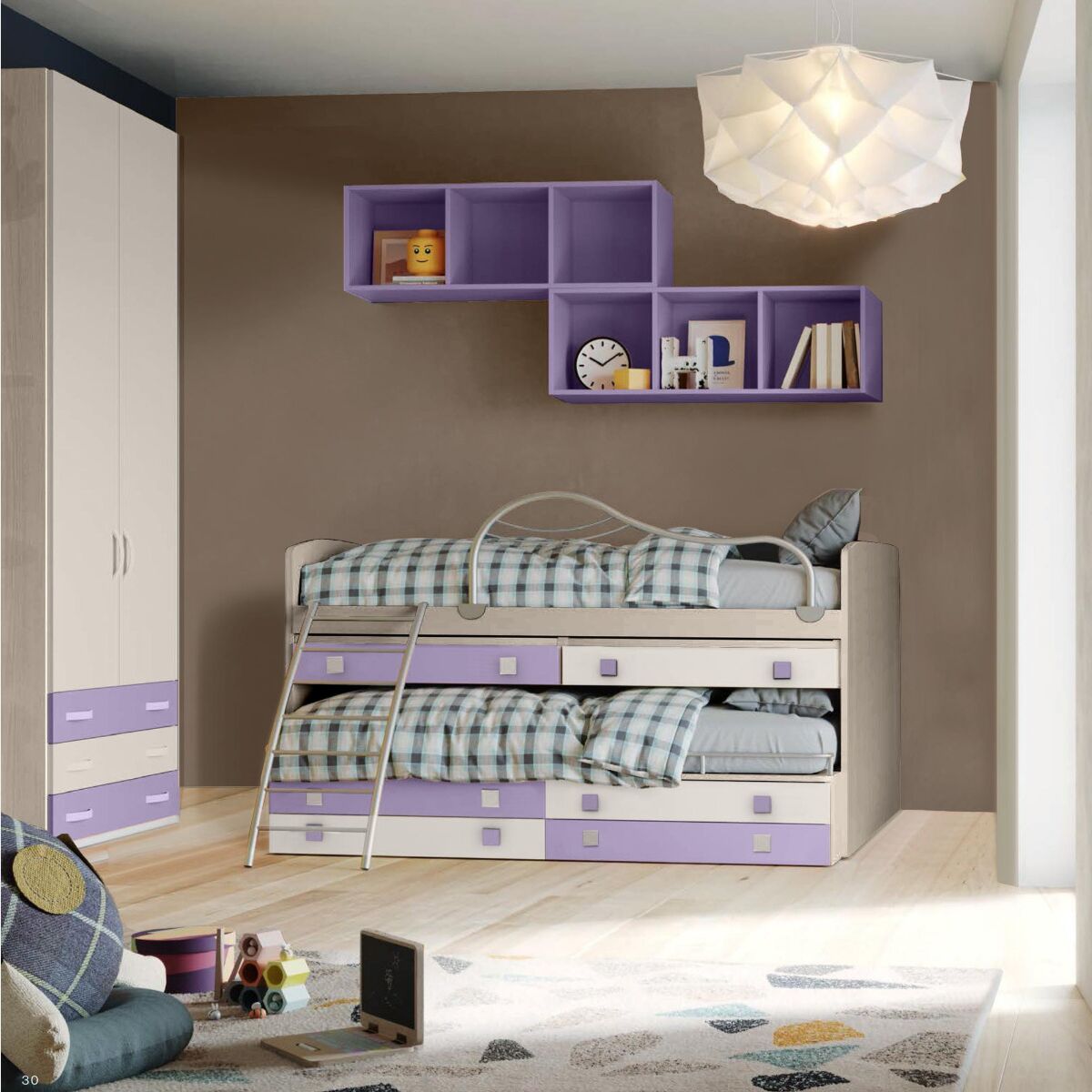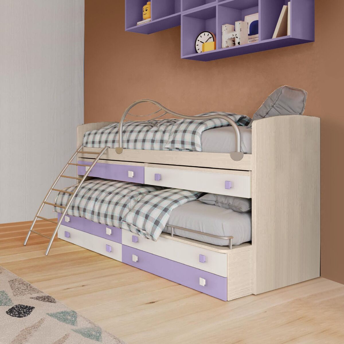 La struttura fornisce due posti letto, due scrivanie estrabili e 6 capienti cassetti. La possibilità di personalizzare diventa caratteristica fondamentale per adattare al meglio il letto alla propria cameretta.