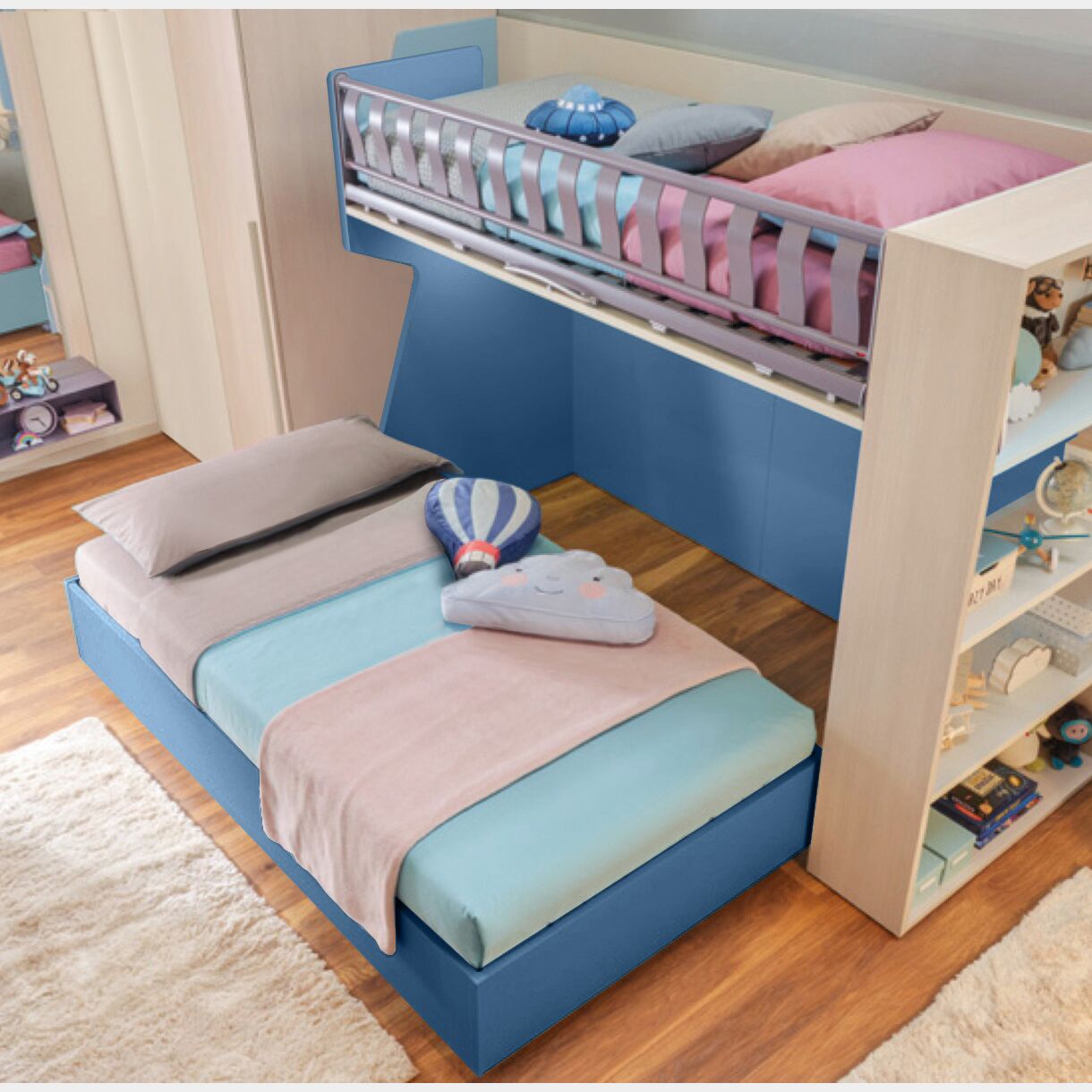 Un'intensa tonalità di blu caratterizza il letto sommier, assicurando così uno stile unico, moderno e ben definito, capace di donare carattere ad ogni cameretta. Il letto sommier viene generalmente scelto da chi ha determinate dimensioni da rispettare, da chi desidera completare una struttura a ponte oppure da chi desidera un arredo sobrio ed elegante, che possa risaltare le caratteristiche della cameretta, come ad esempio le pareti.