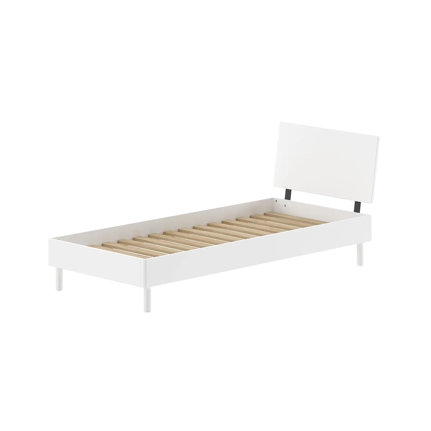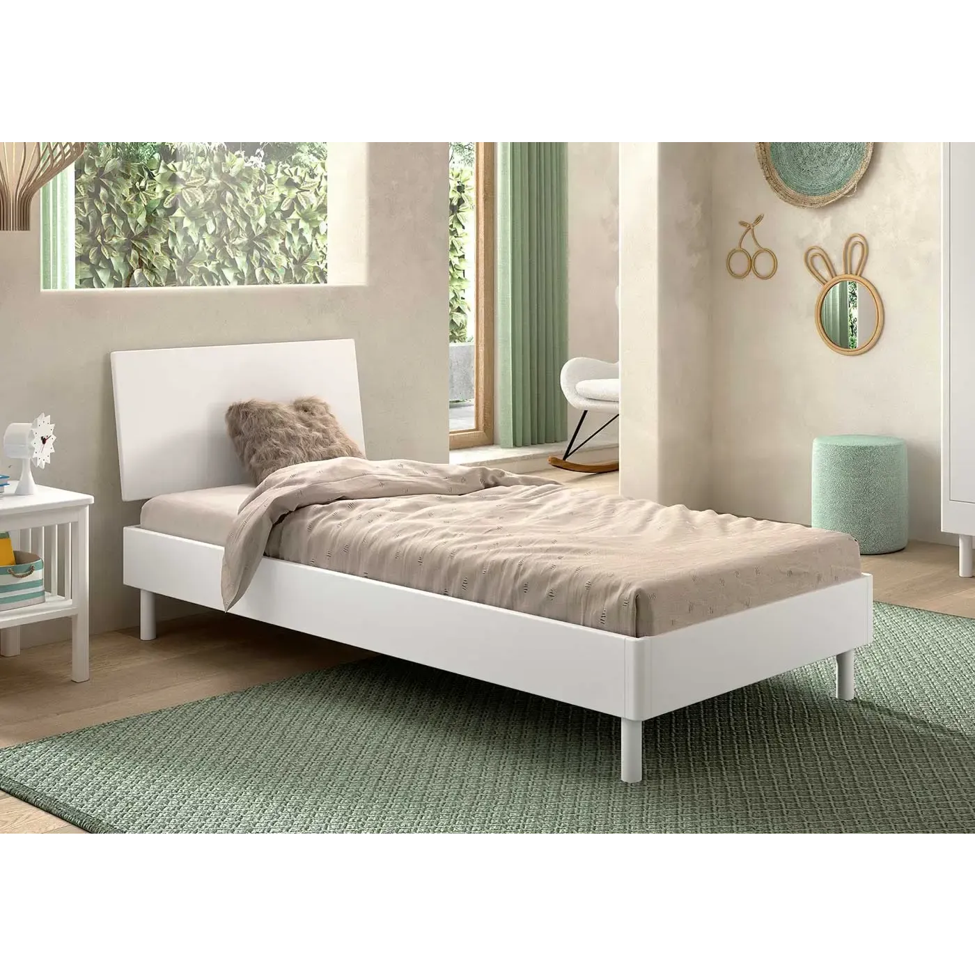 Il letto, realizzato in faggio europeo di alta qualità, è provvisto di testiera e sponde in legno laccato bianco. Esso è stato progettato con attenzione ai dettagli ed emana qualità a ogni livello.