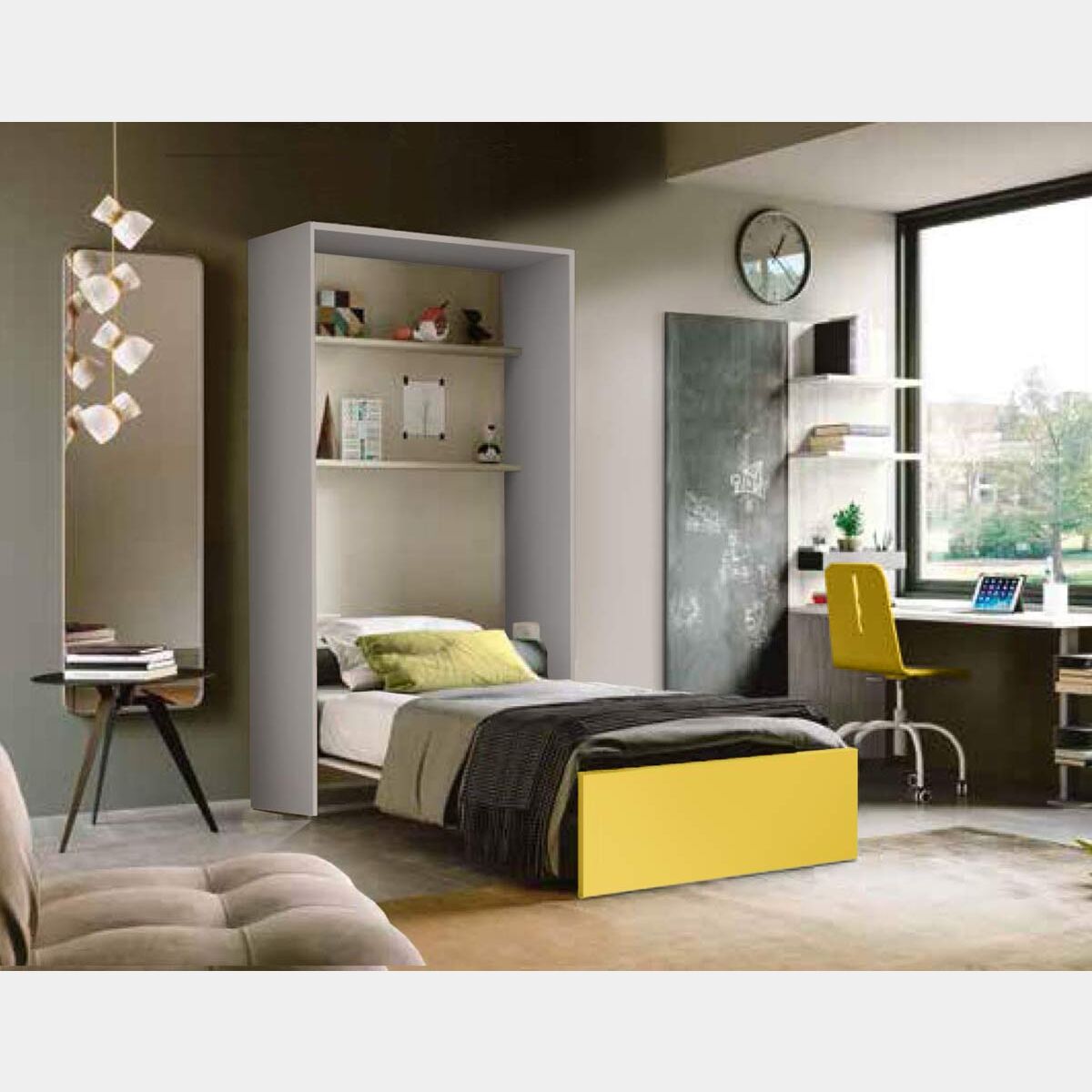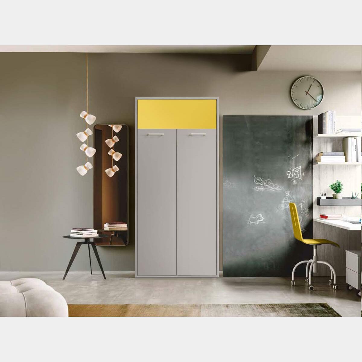 Letto singolo a scomparsa, finitura Grigio seta e Giallo cedro