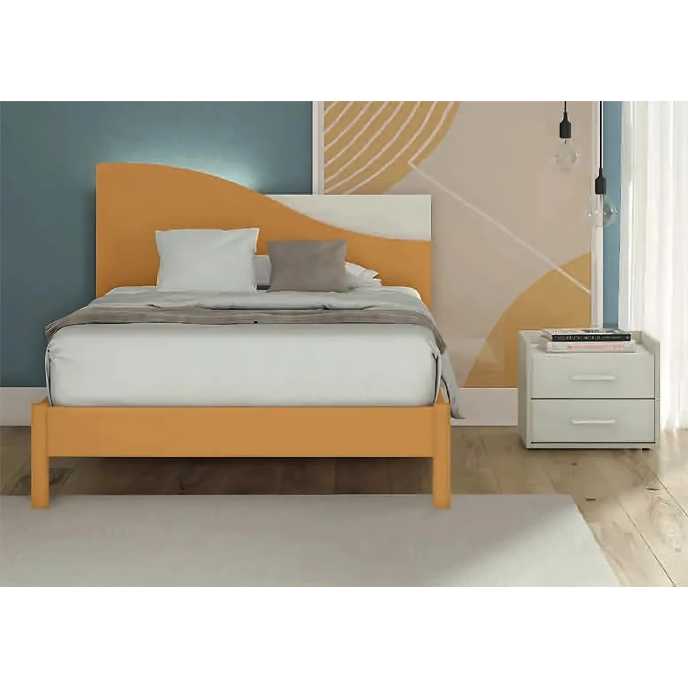 La struttura è predisposta per una rete senza piedini, vengono fornite le staffe di appoggio. Come optional è possibile aggiungere un comodino a 2 cassetti. Le finiture qui proposte sono il Miele e il Cemento artico ma molte altre sono quelle disponibili. Lo stesso vale per le misure della rete, che oltre allo standard 120x190 presenta l'alternativa di 120x200.