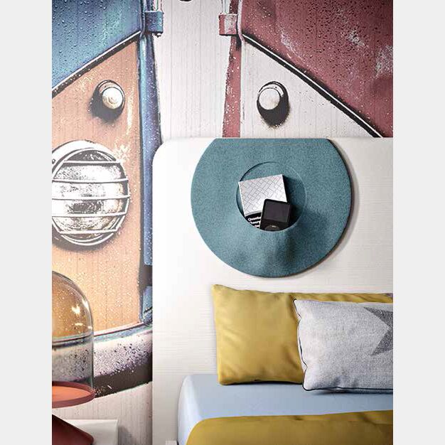 Il letto Brio presenta un design semplice e lineare, la testata è rettangolare e i particolari piedini sono in finitura bianco. Caratteristica fondamentale del letto è la possibilità di richiedere la tasca rimovibile che viene fornita con adesivo e velcro. Come optional è possibile richiedere inoltre il comodino con 2 cassetti.