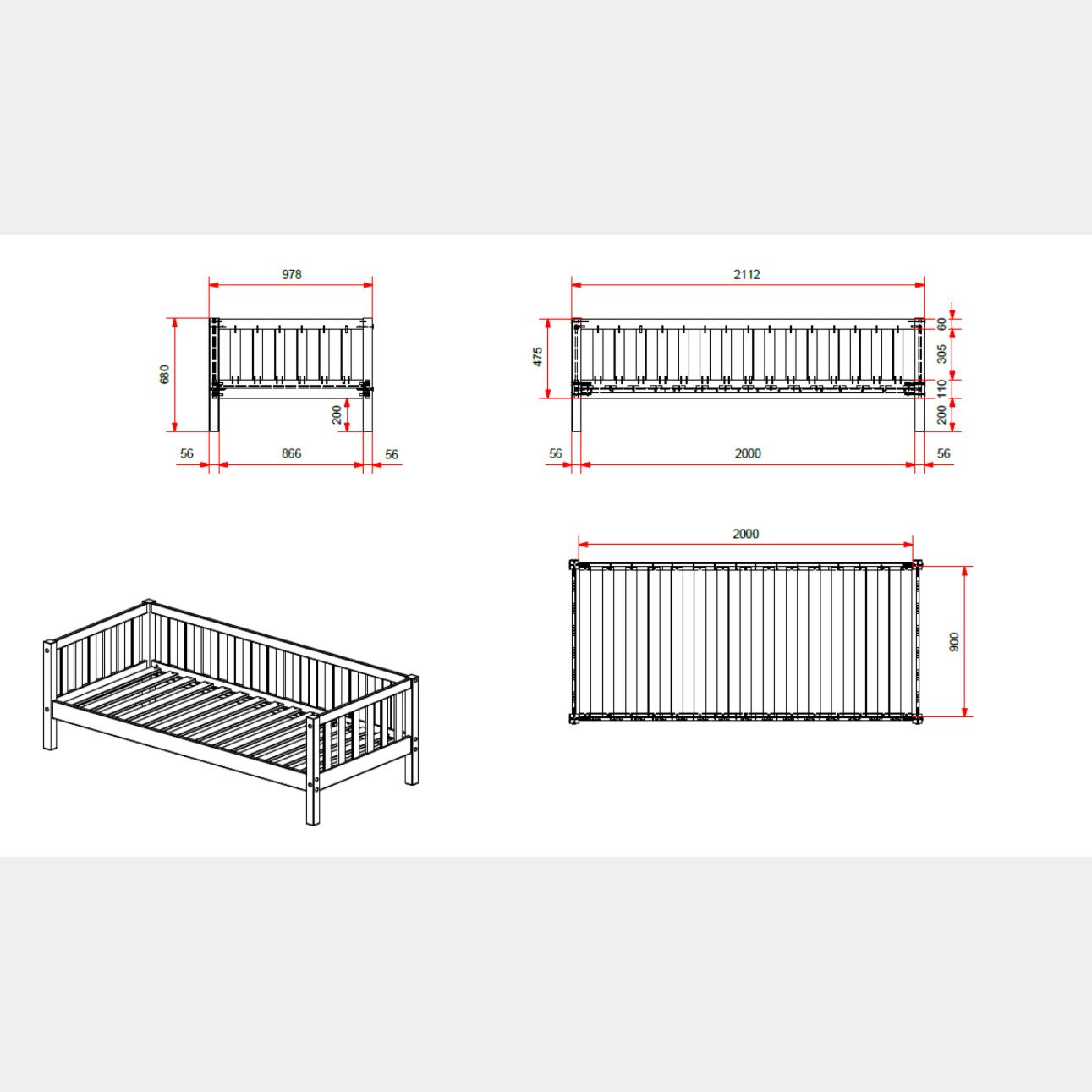 • Materiale: il letto singolo è in pino massello, disponibile in naturale o bianco.
