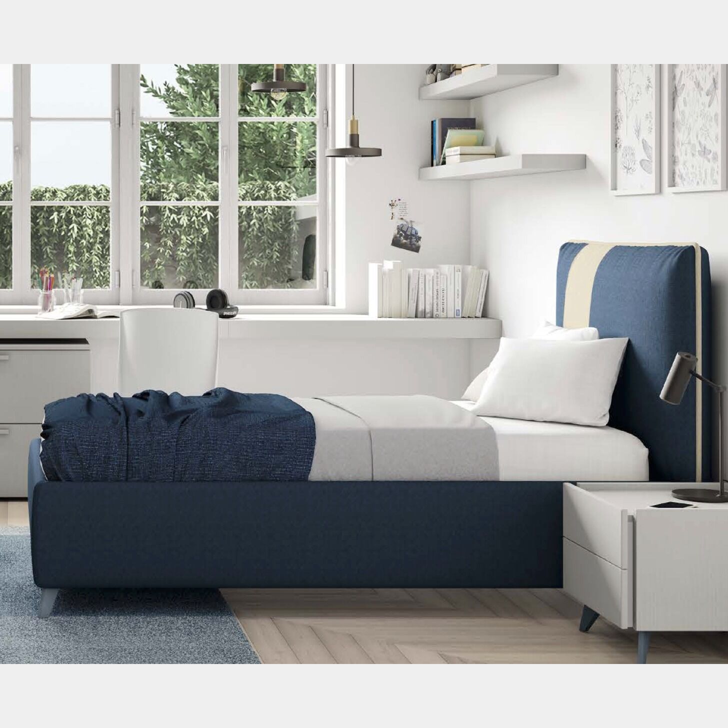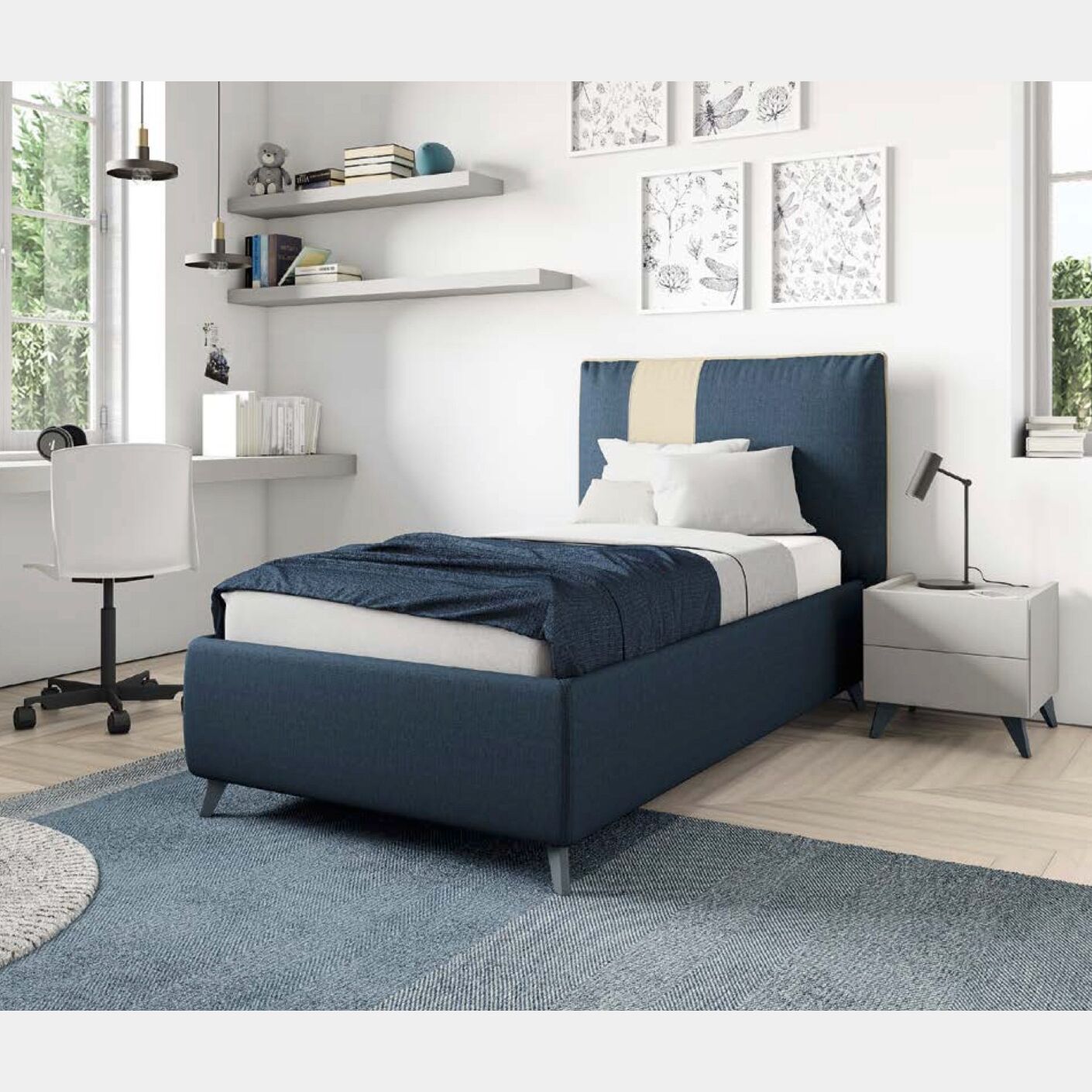 Letto singolo in tessuto, finitura Blu opale e Desert