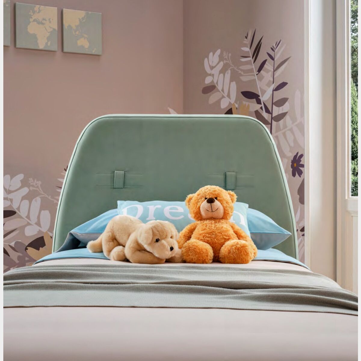 Svegliarsi al mattino può diventare un momento piacevole. Grazie alla qualità del letto Lolo con testata e giroletto imbottiti.