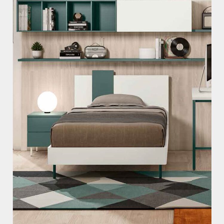 Letto singolo Verde salvia e Bianco. Letto ad una piazza POP. Moderno e di design il letto POP è disponibile nelle finiture Essenze e Colorati e i vari componenti possono essere scelti di diversi colori.