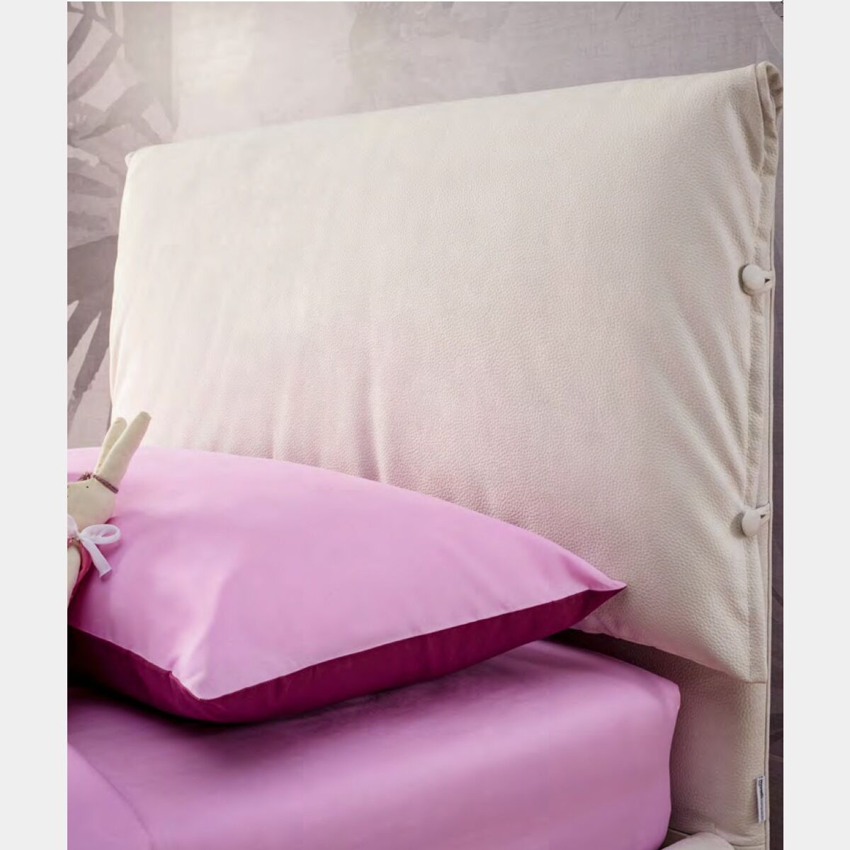 Letto singolo Ginger Moretti Compact con cuscino nella testata, Cotone e Lampone