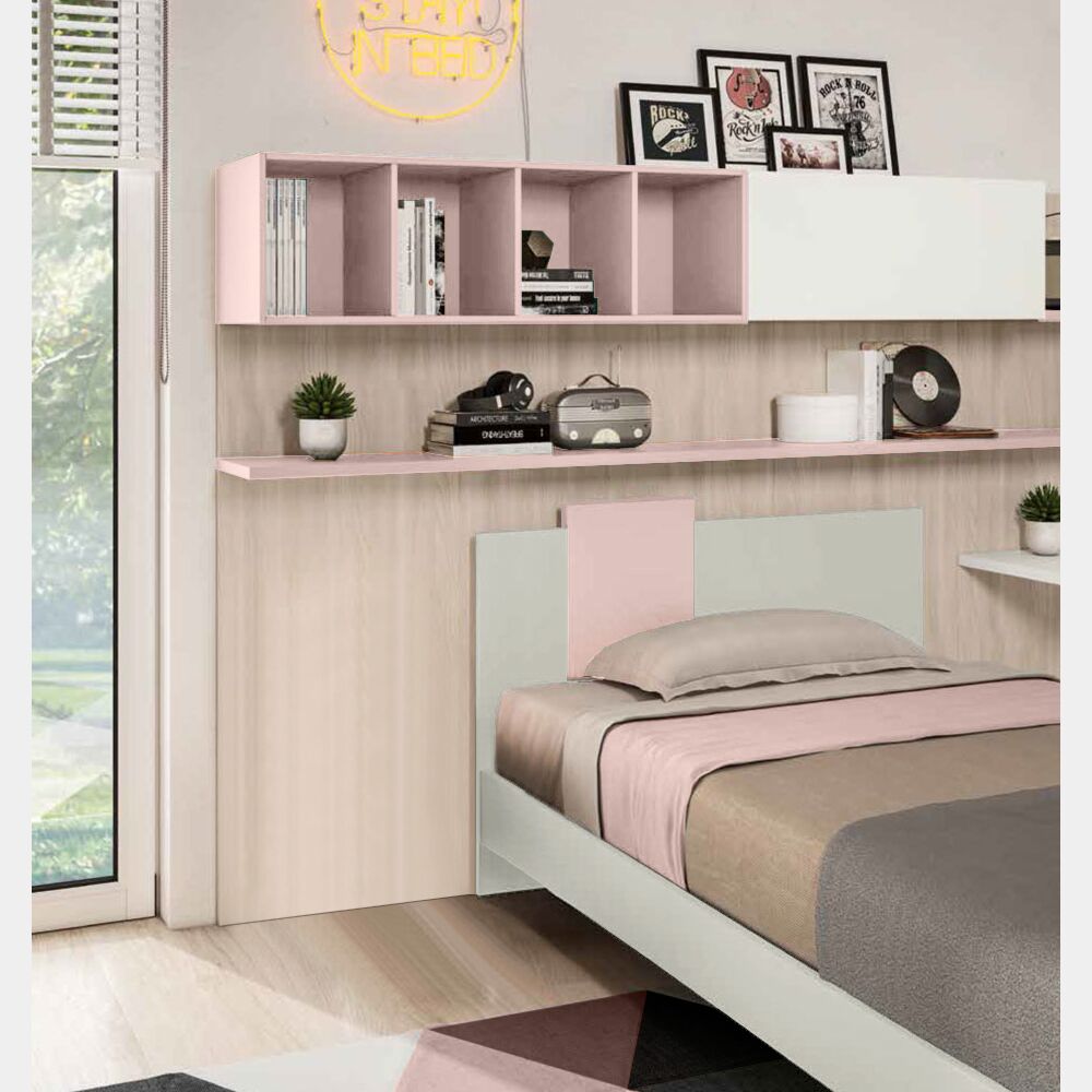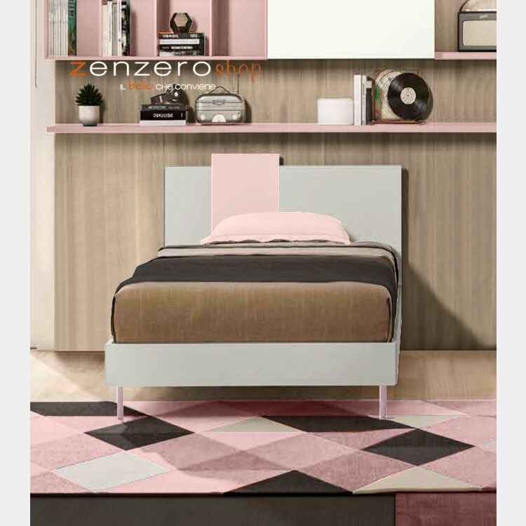 Il letto singolo presenta un design semplice e lineare, valorizzato dall'inserto Rosa confetto che riprende il giroletto, creando un cotrasto con il Grigio seta. Pratico e funzionale risulta una valida soluzione d'arredo per tutte le camerette, anche per quelle di medie o piccole dimensioni. Per assicurare un letto in armonia con il proprio ambiente e gusti è possibile personalizzare le finiture creando accostamenti unici e caratteristici, che diano un tocco personale alla stanza. Sono disponibili quattro dimensioni, è possibile richiedere la rete a doghe tramite apposito configuratore.