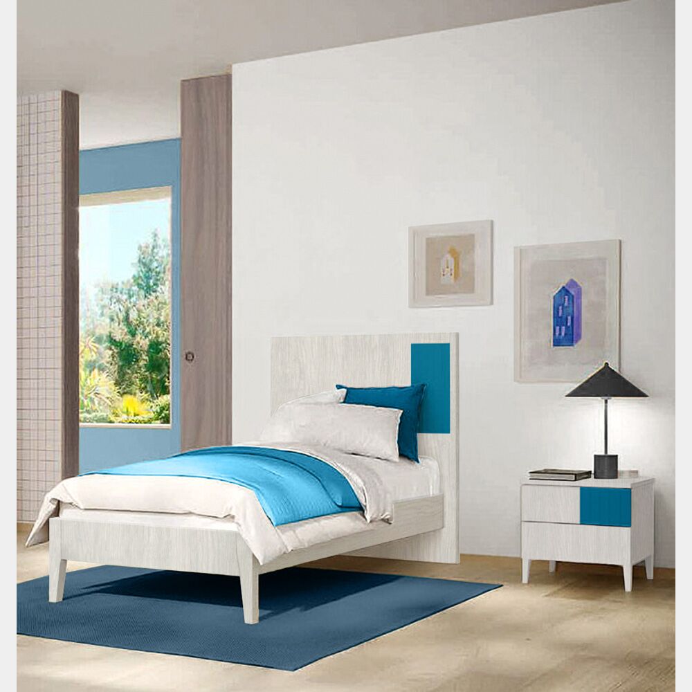Letto singolo Rovere gesso con dettaglio Blu egeo