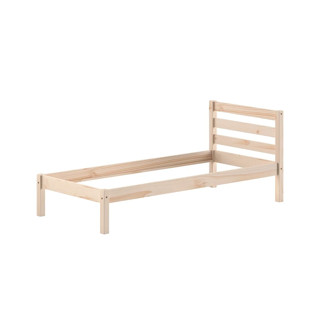 Letto singolo in colorazione naturale si adatta a vari stili d'interni grazie al suo design elegante e minimalista. Esso è robusto e di eccellente qualità, costruito per durare molti anni grazia alla scelta di usare il pino scandinavo come materiale.