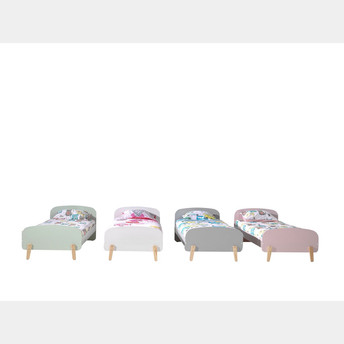 Il letto singolo è disponibile in Bianco, Rosa, Verde acqua o Grigio.