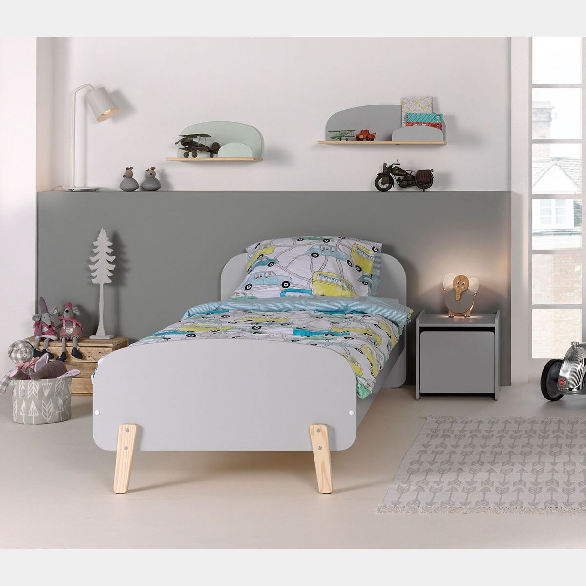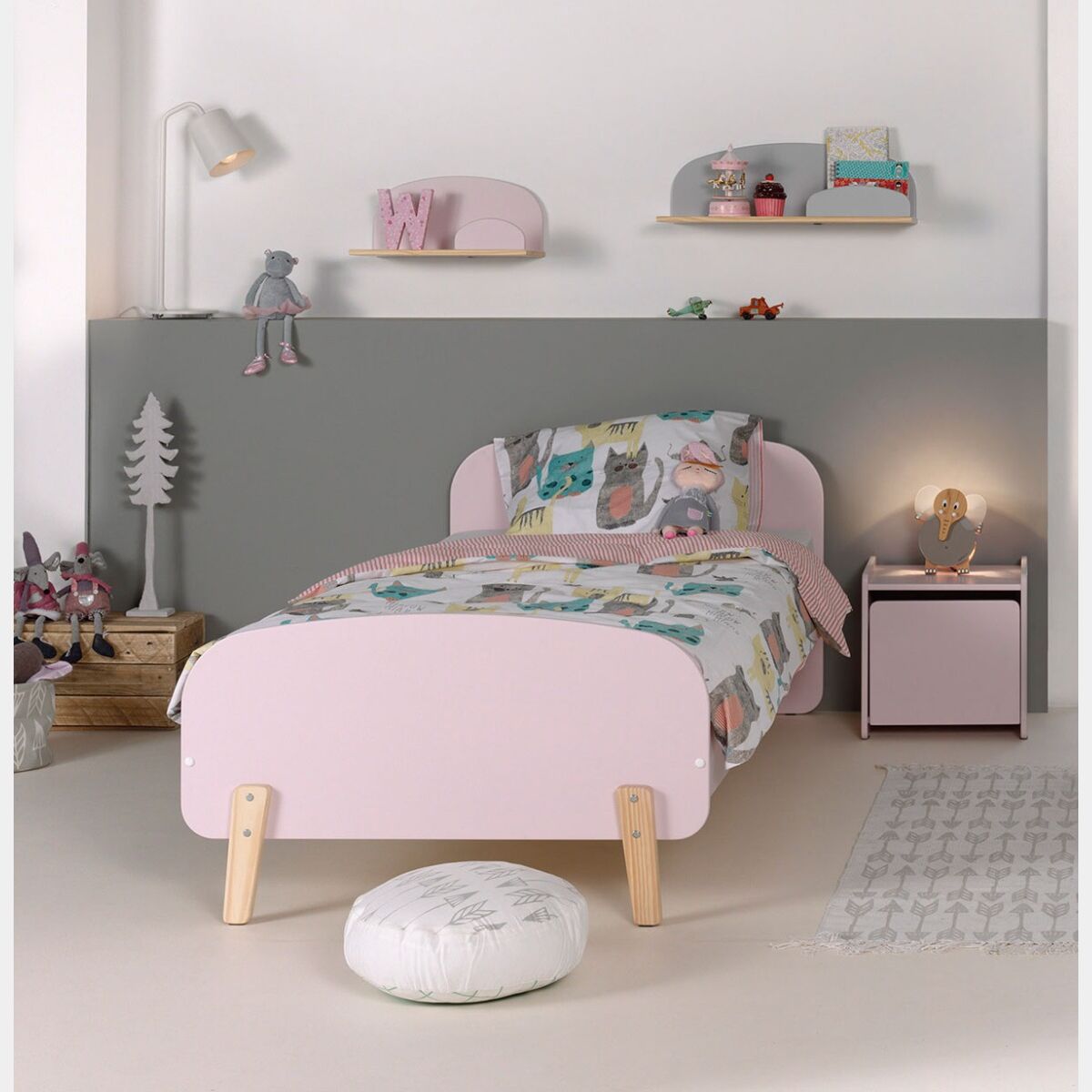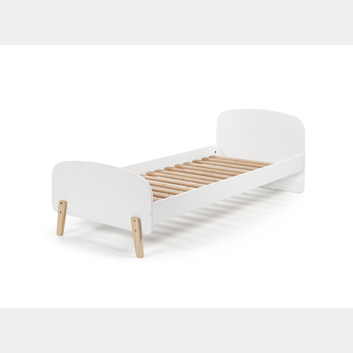 Il letto singolo preseta testata e pediera arrotondate; le gambe sono in pino massello, questa caratteristica gli conferisce un aspetto scandinavo. Il lettino singolo è prodotto in Europa, viene fornito smontato con istruzioni di montaggio.