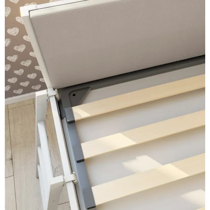 Al letto è possibile aggiungere il rivestimento in tessuto nei tre lati, in questo caso le dimensioni utili per il materasso diventeranno 195x87 cm.