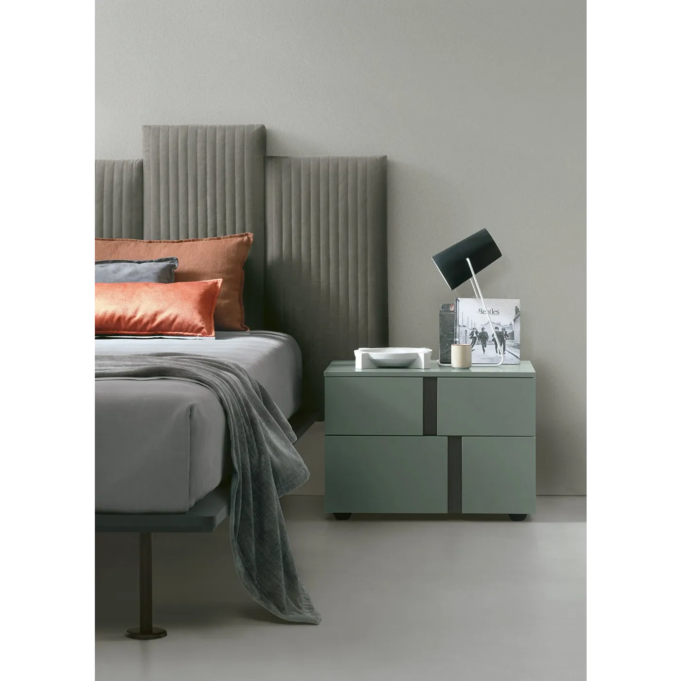 Ispirata ai profili delle città metropolitane la testata Skyline, valorizzata da un sottile giroletto Piuma in legno, nella finitura Rovere carbone, offre un arredo unico e ricercato.